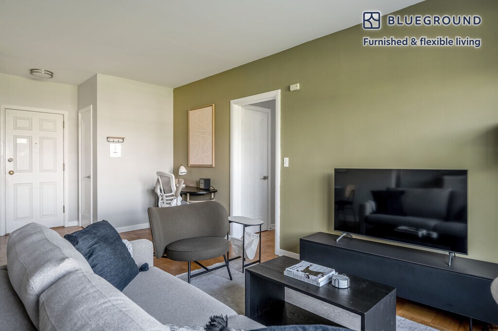 Show up and start living from day one in Evanston with this stylish one bedroom Blueground apartment. You’ll love coming home to this thoughtfully furnished, beautifully designed, and fully equipped Evanston home. (ID #CHI952) The advertised rate of $2,070/month is the lowest available price, based on a 12 month(s) stay with a move-in date of March 23, 2026. Rates vary depending on the duration of stay, season, and other parameters. For exact pricing and additional pricing components, please visit our website and enter your desired move-in and move-out dates. The rate is applicable when billed upfront; it can be higher if billed in multiple payments. Brokers are welcome to reach out. Were you looking for an unfurnished lease? Try Blueground instead and upgrade from unfurnished to furnished living: - Furnished at rates comparable to unfurnished - No setup or furniture costs - save thousands - Move-in ready - save time, just bring your suitcase Designed with you in mind Thoughtfully designed with bespoke finishes, modern furnishings, and a fully equipped kitchen, you’ll enjoy that “I’m home” feeling with this Blueground apartment. Whether you’re lounging in your spacious living room streaming the latest and greatest entertainment on the smart TV or premium wireless speaker, or getting some well-earned rest on the superior quality mattress with luxury linens, you’ll fall in love with everything this Evanston apartment has to offer. Sleeping arrangements Queen Bed, 63in/160cm Amenities Building amenities unique to this one bedroom apartment include an on-site: - Dryer in building - Washing machine in building - Parking - Pets allowed Arrival and ongoing support The entire apartment is yours to enjoy! Throughout your stay, you’ll have access to our Client Experience team through the Blueground App. You can schedule additional cleanings, submit maintenance requests, and view our neighborhood recommendations with just a few taps. We’ll share all details upon confirmation of your stay. Ideally Located This furnished apartment is located in Evanston, a diverse suburb in Cook County that's just 12 miles north of downtown Chicago. Home to Northwestern University, this thriving community has a vibrant culture all its own. Evanston has great dining and shopping, as well as plenty of bars and restaurants catering to its large student population. Although many Evanston residents rely on cars to get around, there are six CTA bus routes to help residents navigate the city. There's also a direct connection to Chicago via the Metro's Purple Line. Other things to note Building amenities may have an extra cost. This Blueground apartment has flexible lease options, allowing you to book it for one month, a year, or more. Pets are welcome, though weight limits and breed restrictions apply and may incur fees. Parking is offered based on availability and is subject to a fee. Please keep in mind that this is a walk up building. We take great pride in ensuring every photo displayed is shot in our own units with our actual furnishings. That said, we regularly refresh our decor and furniture arrangement, which may differ from what’s pictured. Also note - This apartment is not located near public transportation - This apartment is near a stadium and can be noisy on game nights - Ongoing construction in close proximity; construction sounds may occasionally be heard [SI]