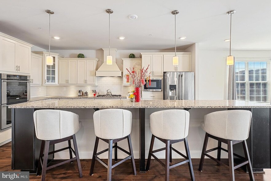 FOR RENT Shows Like a Model! Built in 2020 by Lennar, this upgraded 4-level brick-front townhome backs to trees and a small stream on a premium lot. Offering 3,224 sq. ft., 5 bedrooms, 3 full & 2 half baths, this spacious home features wood floors, an open-concept layout, and a gourmet kitchen with a large island, granite counters, stainless steel appliances, 5-burner gas cooktop, and double wall oven. The luxury primary suite includes a tray ceiling, sitting area, custom walk-in closet, and spa-style bath. Enjoy a top-floor loft with wet bar and roof deck, plus a finished lower level with extra bedroom/office, full bath, and 2-car garage. Fenced yard. Community amenities included. Prime commuter location near shopping & dining.