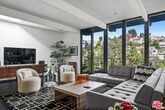 Tucked away in the serene Hollywood Dell, this secluded canyon-view residence was masterfully designed by renowned mid-century architect Ed Fickett. The home showcases signature post-and-beam architecture, dramatic walls of glass, and carefully preserved vintage details that blend effortlessly with modern comforts. Once the Los Angeles retreat of legendary actress Ava Gardner during her years with Frank Sinatra, the property carries a rich sense of Hollywood history. Outside, a generous grassy play yard with a charming treehouse offers space to relax and enjoy the surrounding nature. The offering also includes a rare double lot (2769 Rinconia Dr, APN# 5585-014-016), enhancing both privacy and potential.