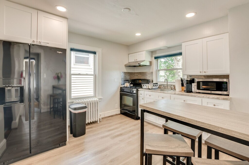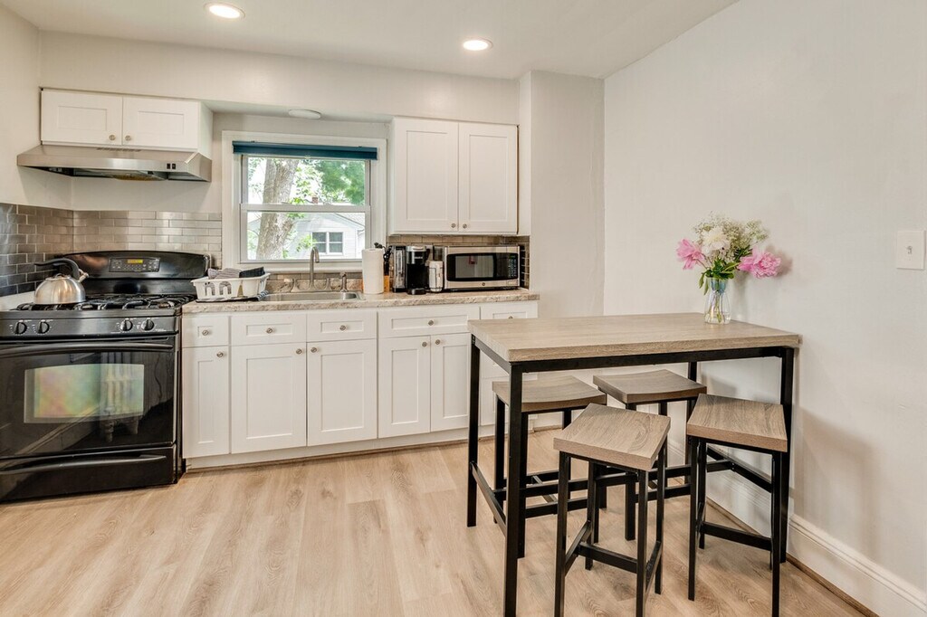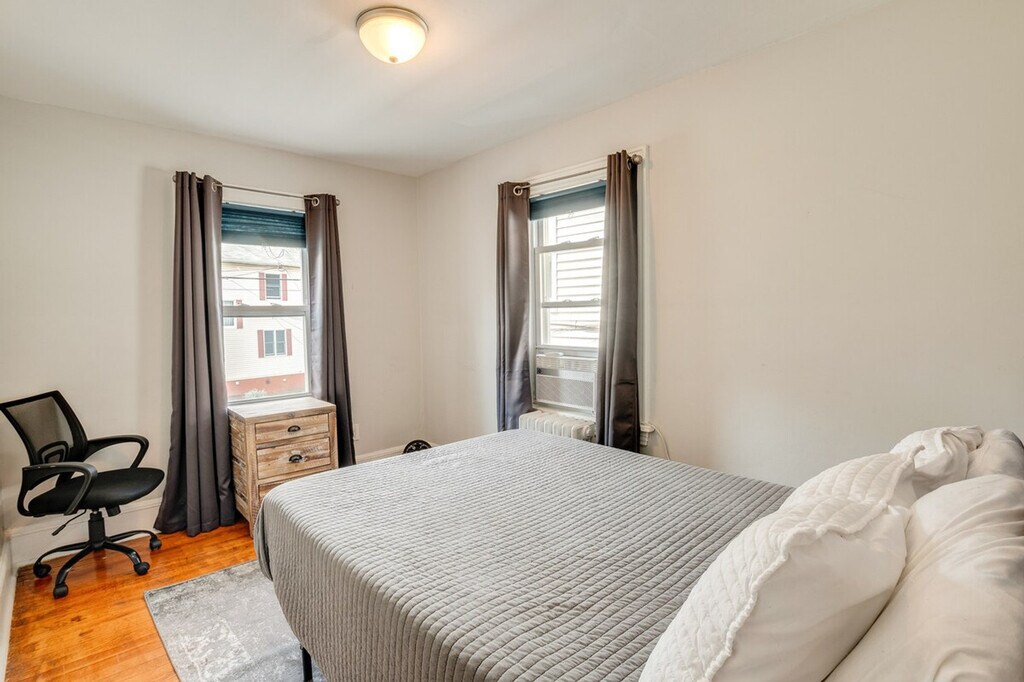 Feel at home in this Hackensack vacation rental, located just 18 miles from New York City. This single-story apartment requires six steps to enter and interior stairs to access the bedrooms, bathroom, and kitchen on the main level. Ideal for family getaways or friend-group getaways, this 2-bedroom, 1-bath apartment boasts a cozy interior. This apartment features a smart TV with cable and Netflix, a dining table, and a shower/tub combo. The kitchen is equipped with a stove/oven, refrigerator, cooking basics, dishware/flatware, a pod coffee maker (Keurig, starter pack of pods provided), teapot, microwave, ice maker, and knife set. Additional amenities include central heating and air conditioning, window a/c units, complimentary toiletries, a hair dryer, clothes steamer, hangers, an iron/board, linens/towels, trash bags, and paper towels. Guests will have access to the entire property via keyless entry. Enjoy the convenience of being near shopping, parks, and theme parks. Treat the kids to a day at Nickelodeon Universe Theme Park, or take a day trip to New York to soak in the sights of Times Square, enjoy a picnic in Central Park, or marvel at the Statue of Liberty. There is another unit on-site, and long-term tenants may be present during your stay and share the backyard. No extensive use of the electricity is allowed, which may include mining cryptocurrency, routing stations, or anything additional that can be modified with the current modem at the property. Electric vehicle charging is also not allowed at the property. [SI]