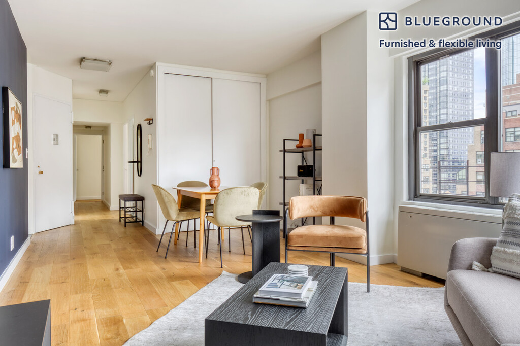 Show up and start living from day one in New York with this sophisticated three bedroom Blueground apartment. You’ll love coming home to this thoughtfully furnished, beautifully designed, and fully equipped Midtown East home with stunning high floor views over the city. (ID #NYC814) The advertised rate of $6,590/month is the lowest available price, based on a 2 month(s) and 22 day(s) stay with a move-in date of October 31, 2025. If you’re looking for a 1-year stay, the rate is $8,690/month. Rates vary depending on the duration of stay, season, and other parameters. For exact pricing and additional pricing components, please visit our website and enter your desired move-in and move-out dates. The rate is applicable when billed upfront; it can be higher if billed in multiple payments. Brokers are welcome to reach out. Were you looking for an unfurnished lease? Try Blueground instead and upgrade from unfurnished to furnished living: - Furnished at rates comparable to unfurnished - No setup or furniture costs - save thousands - Move-in ready - save time, just bring your suitcase Designed with you in mind As with any Blueground apartment, you’ll find a thoughtfully designed space complete with beautiful furniture and a fully equipped kitchen in this three bedroom property. And, thanks to our superior quality mattresses, luxury linens, and towels, you can relax knowing you’ll always feel comfortably at home. When you’re ready for some fun, you can take in the New York vibes or bring the entertainment to you with the premium wireless speaker or smart TV. Sleeping arrangements Queen Bed, 63in/160cm Queen Bed, 63in/160cm Queen Bed, 63in/160cm Amenities Building amenities unique to this three bedroom apartment include an on-site: - Doorman - Dryer in building - Elevator - Washing machine in building - Pets allowed Arrival and ongoing support The entire apartment is yours to enjoy! Throughout your stay, you’ll have access to our Client Experience team through the Blueground App. You can schedule additional cleanings, submit maintenance requests, and view our neighborhood recommendations with just a few taps. We’ll share all details upon confirmation of your stay. Ideally Located This furnished apartment is located in Midtown East. This bustling neighborhood is home to NYC landmarks like the Empire State Building, the United Nations' headquarters, and Grand Central Station. Midtown East is also home to a thriving dining scene, with everything from humble food carts selling hotdogs to white-tablecloth restaurants with multiple Michelin stars. There are also many cultural attractions, including the Museum of Modern Art, the lovely Japan Society, the historic Morgan Library, and more. Midtown East is also home to some incredible shopping, from the international flagship stores along Fifth Avenue to Bloomingdale's, one of the city's best-loved department stores. Other things to note This Blueground apartment has flexible lease options, allowing you to book it for one month, a year, or more. Pets are welcome, though weight limits and breed restrictions apply and may incur fees. Brokes CYOF. We take great pride in ensuring every photo displayed is shot in our own units with our actual furnishings. That said, we regularly refresh our decor and furniture arrangement, which may differ from what’s pictured. Also note - Other apartments in this building are undergoing renovations, and you may hear construction noise inside your apartment from time to time [SI]