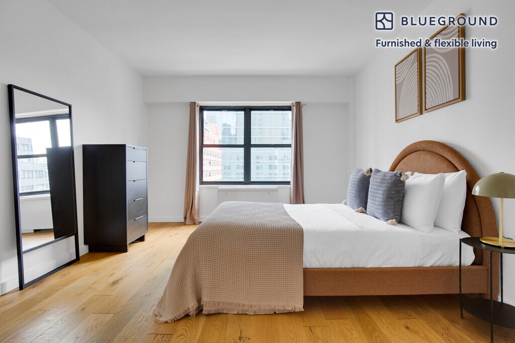 Show up and start living from day one in New York with this pretty one bedroom Blueground apartment. You’ll love coming home to this thoughtfully furnished, beautifully designed, and fully equipped Midtown East home. (ID #NYC906) The advertised rate of $4,160/month is the lowest available price, based on a 1 month(s) and 10 day(s) stay with a move-in date of January 8, 2026. If you’re looking for a 1-year stay, the rate is $4,540/month. Rates vary depending on the duration of stay, season, and other parameters. For exact pricing and additional pricing components, please visit our website and enter your desired move-in and move-out dates. The rate is applicable when billed upfront; it can be higher if billed in multiple payments. Brokers are welcome to reach out. Were you looking for an unfurnished lease? Try Blueground instead and upgrade from unfurnished to furnished living: - Furnished at rates comparable to unfurnished - No setup or furniture costs - save thousands - Move-in ready - save time, just bring your suitcase Designed with you in mind Gorgeous furniture, fully equipped kitchen, smart TV, and a premium wireless speaker are just a few of the amenities you’ll find inside this one bedroom apartment. Ideally located in New York, you’ll find a lot to love outside as well. When you’re ready to relax, you’ll be happy to discover every Blueground bedroom comes with superior quality mattresses, luxury linens, and cozy towels. We handle everything so you can simply show up and start living. Sleeping arrangements Queen Bed, 63in/160cm Amenities Building amenities unique to this one bedroom apartment include an on-site: - Doorman - Dryer in building - Elevator - Washing machine in building - Pets allowed Arrival and ongoing support The entire apartment is yours to enjoy! Throughout your stay, you’ll have access to our Client Experience team through the Blueground App. You can schedule additional cleanings, submit maintenance requests, and view our neighborhood recommendations with just a few taps. We’ll share all details upon confirmation of your stay. Ideally Located This furnished apartment is located in Midtown East. This bustling neighborhood is home to NYC landmarks like the Empire State Building, the United Nations' headquarters, and Grand Central Station. Midtown East is also home to a thriving dining scene, with everything from humble food carts selling hotdogs to white-tablecloth restaurants with multiple Michelin stars. There are also many cultural attractions, including the Museum of Modern Art, the lovely Japan Society, the historic Morgan Library, and more. Midtown East is also home to some incredible shopping, from the international flagship stores along Fifth Avenue to Bloomingdale's, one of the city's best-loved department stores. Other things to note This Blueground apartment has flexible lease options, allowing you to book it for one month, a year, or more. Pets are welcome, though weight limits and breed restrictions apply and may incur fees. Brokes CYOF. We take great pride in ensuring every photo displayed is shot in our own units with our actual furnishings. That said, we regularly refresh our decor and furniture arrangement, which may differ from what’s pictured. Also note - Other apartments in this building are undergoing renovations, and you may hear construction noise inside your apartment from time to time