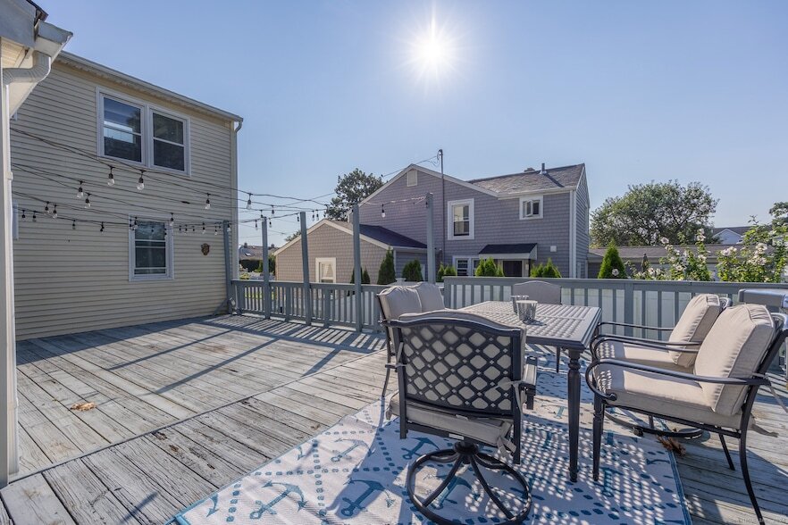 Bright and airy 4 bedroom 2 bathroom Colonial very close to Walnut Beach in the Wildemere Beach area. Enjoy your best beach life! Wonderful floor plan. Remodeled bathrooms and a huge family room with vaulted ceiling. 2 large bedrooms and full bathroom (remodeled), huge living room (photographed as a dining room) kitchen and family room on the main level. Upstairs is light filled with two large bedrooms and full bathroom (remodeled) . Sliders on the main floor to a large deck in a large, fenced, level backyard. Off Street Parking easily for 4 cars. Great commuting location to New Haven and NYC. Access to train station, highways, hospital, parks, restaurants and shopping.