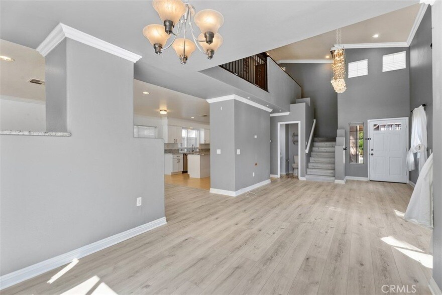 Welcome to this exquisite home located in the highly sought-after Vintage Promenade neighborhood of Foothill Ranch. Boasting an open and spacious floor plan, this property features three bedrooms and a versatile loft area. The first floor offers a host of desirable features, including beautiful engineered hardwood flooring and new laminate flooring installed in two bedrooms, custom baseboards, and elegant crown molding throughout. The remodeled gourmet kitchen is a true focal point of the home, showcasing gorgeous granite countertops, custom cabinets, a center island, and stainless steel appliances. The kitchen seamlessly flows into a large family room, complete with a custom fireplace and a media niche. Additionally, there is a separate formal living room and dining room with soaring vaulted ceilings, creating a welcoming and sophisticated atmosphere. Upstairs, you'll find two generously sized bedrooms, along with a spacious master suite that includes a walk-in closet, updated lighting, and dual vanities in the en-suite bathroom. Overlooking the living room area, the loft is a versatile space perfect for an office, playroom, or den. The private back yard is an entertainer's dream, featuring lush landscaping complemented by water-resistant turf grass. A custom stone inlay hardscape and a patio cover add to the charm of the outdoor space. Notably, this home is equipped with Sunrun solar for reduced electricity bills. The two-car garage has been thoughtfully upgraded with laminate flooring, overhead storage, and a 10' projection screen, making it an ideal spot for gatherings and movie nights. Just installed brand new HVAC Lennox system. This residence is conveniently located close to the 241 toll road, neighborhood shopping, schools, trails, and parks, making it a perfect place to call home. Note: Tenant to pay monthly solar fee.