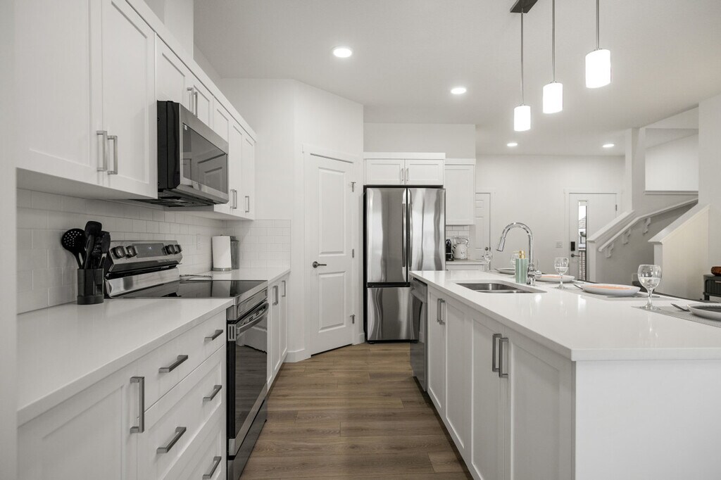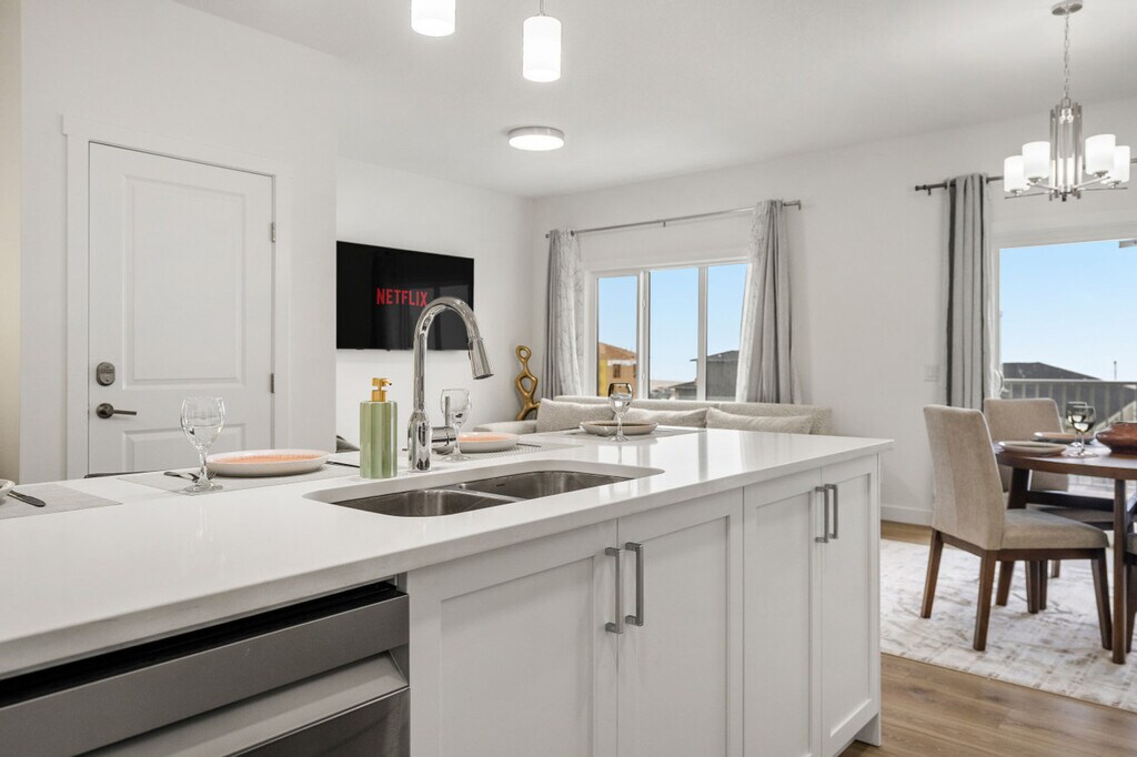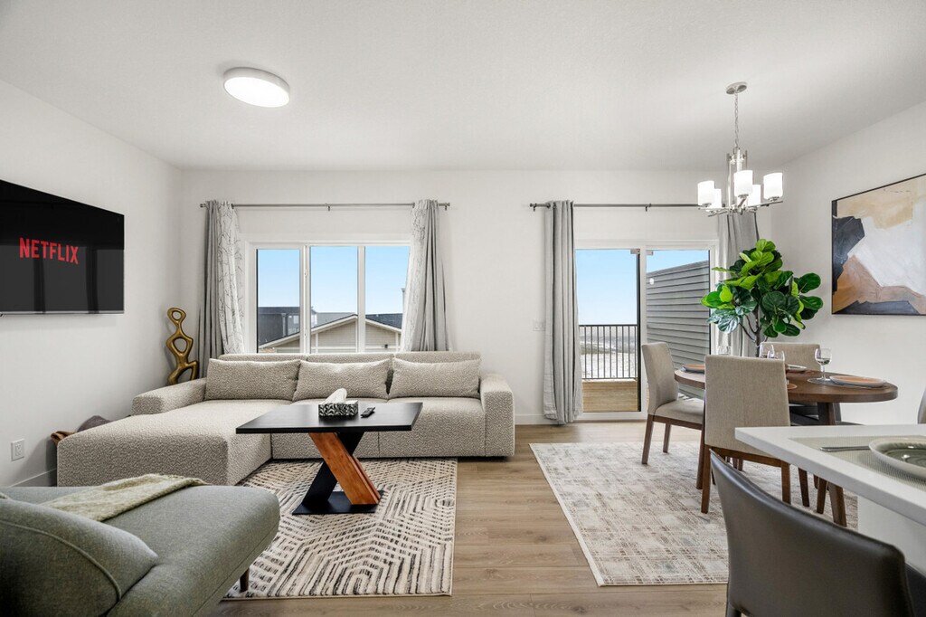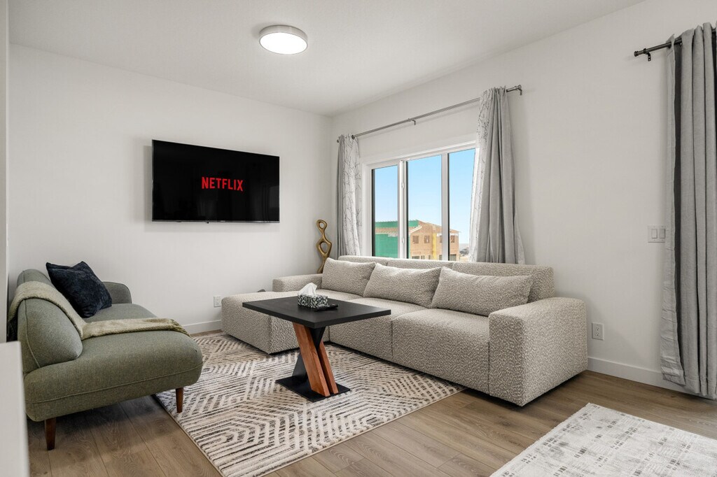 The advertised rate of C$4,481/month is the lowest available price, based on a 30 day(s) stay with a move-in date of March 7, 2026. Rates vary depending on the duration of stay, season, and other parameters. For exact pricing and additional pricing components, please visit our website and enter your desired move-in and move-out dates. The rate is applicable when billed upfront; it can be higher if billed in multiple payments. Feel at home in this apartment with mountain views. This property features 3 bedrooms, 2 full bathrooms, and a half bathroom. This apartment features 2 king-size beds, a double bed, and 2 large sofas. The fully equipped and stocked kitchen includes a 4-burner stove, oven, microwave, refrigerator, freezer, dishwasher with pods, drip coffee maker, toaster, hand blender, dining table with kitchen island seating and bar stools. Complimentary items include paper towels, coffee grounds, tea, and a Brita. Enjoy entertainment options such as a 65" smart TV with Netflix and high-speed Wi-Fi. Additional amenities include a washer and dryer, high chair, and pack n play. Optional upgrades include a National Park entry, welcome basket, birthday decor package, romantic wine & flower package, spa at home package, movie night upgrade, Christmas tree & decor, Halloween decor & pumpkin carving package, winter cozy package, beer tasting kit, diffuser & aroma set, additional bedding & sleeping arrangements, and grocery pre-stocking service. This apartment includes a 2-car garage and driveway space. This apartment is located 40 minutes from Rockyview General Hospital, 10 minutes from Glenbow Ranch Provincial Park, 38 minutes from Downtown Calgary, 41 minutes from Calgary Zoo & TELUS Spark Science Centre, 30 minutes from University of Calgary, 40 minutes from Calgary International Airport, 30 minutes from WinSport Canada Olympic Park, 36 minutes from CrossIron Mills, 51 minutes from Canmore, 1 hour 7 minutes to Banff National Park, and 1 hour 40 minutes to Lake Louise. A simple pre-arrival form, ID verification, deposit, and agreement may be required before check-in. Any damaged linens, towels, utilities, or equipment upon check-out will be subject to fees. Guests must follow all municipal guidelines for garbage, recycling, and compost, with fees of $120 for loose or improperly disposed waste and $100 for failure to sort waste. Guests are responsible for any additional third-party disposal charges. Follow local parking rules, as we are not liable for any fees/fines/towing. If items are left behind after a stay, the guest will need to arrange with the host to collect them within 14 days of the guest's checkout date; if shipping is required, a fee of $50 plus postage will be charged prior to the items being shipped. A $250 CAD fine will be charged if smoking with the migration of smoke or smell of smoke from our unit following by law and fine policy. No shoes are allowed inside. Quiet hours are from 10 pm to 7 am; please be mindful of neighbors and basement tenants. One complaint is a warning, and the second complaint is an eviction. Keep noise under 85db, as we have a noise detector. Unauthorized late check-outs will incur a fee of $50 for the first hour, followed by $35 for each additional 30 minutes. Includes an adjustable height office desk and chair. [SI]