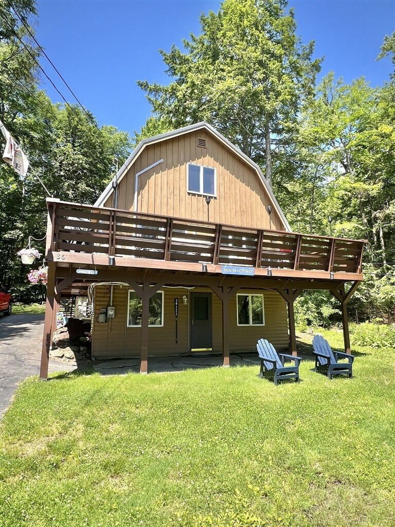 Feel at home in this charming three-bedroom, two-bath gambrel-style home located on the west shore of Sebago Lake in North Sebago. With a spacious open living, kitchen, and dining area leading to a large deck, this home offers a perfect blend of comfort and style. The main floor features a bedroom, while two additional bedrooms are located on the second floor. The walkout basement is equipped with a ping pong table, foosball, and TV for entertainment. Enjoy a private, gently sloping lot just a short walk from a beautiful 120-foot sandy association beach and dock. The beach features a roped-off swimming area for children and a swim float for diving and sunbathing. The property includes a dinghy, two paddle boards, and two single kayaks for your enjoyment, though tenants must provide their own life jackets. Internet access and a DVD player that allows access to personal Netflix accounts are also available. Linens and towels are not provided but are available to rent at our office. The home is equipped with portable fans, heat pumps for AC, oil heating, a gas grill, and a fire pit at the association beach. Outdoor furniture, including chairs and tables, is available at the beach. This home is ideally located near golfing and various area activities, making it a great spot for outdoor enthusiasts. The association beach offers a nice patio and picnic area, perfect for relaxing by the water. The dock is available for loading and unloading, and a mooring is provided for your convenience. The property has an occupancy limit of eight and does not allow pets. Smoking is prohibited. Water is sourced from a well, and the coffee maker is a drip type. [SI]