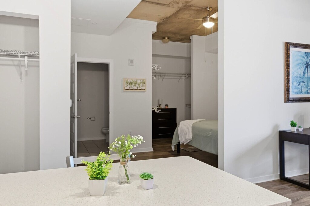 The advertised rate of $2,490/month is the lowest available price, based on a 30 day(s) stay with a move-in date of March 28, 2026. Rates vary depending on the duration of stay, season, and other parameters. For exact pricing and additional pricing components, please visit our website and enter your desired move-in and move-out dates. The rate is applicable when billed upfront; it can be higher if billed in multiple payments. Feel at home in this studio apartment near King Street, designed for extended stays. This apartment includes in-unit laundry and secure building access. The living area offers a comfortable place to relax, work, or unwind and includes a couch, coffee table, and TV. The fully equipped kitchen is ready for cooking and dining, with a Keurig coffee maker, toaster, refrigerator, stove/oven, microwave, and dishwasher. The bedroom features a full-size bed, dresser, and closet. The bathroom includes a tub/shower combination and essential items. Starter supplies are provided to help you settle in. Parking is available for one vehicle. Free garage parking is first-come, first-served, not guaranteed, and best suited for compact vehicles only; a parking pass must be obtained from the front office. If the garage is full, there is a paid parking lot across the street, which is not affiliated with the property. Ideal for traveling professionals, this apartment provides a reliable home base in Charleston. Guests have access to a pool, fitness center, clubhouse, and study rooms. All listed and shared amenities, including gyms and other building features, are available for guest use at your own risk. Access is not guaranteed and may be limited or unavailable due to building maintenance, scheduling, or other factors. Routine pest control is scheduled every Thursday between 9 a.m. and 12 p.m., and entry must be allowed during this window. This unit includes a Minut smart home device to monitor noise levels, smoking, and occupancy. Quiet hours are from 10 PM to 8 AM, and a warning will be issued for noise complaints; a second complaint may result in removal from the property without refund. The check-in time is 4:00 pm and the check-out time is 11:00 am; early check-in and late check-out requests are subject to availability and may incur extra fees. [SI]