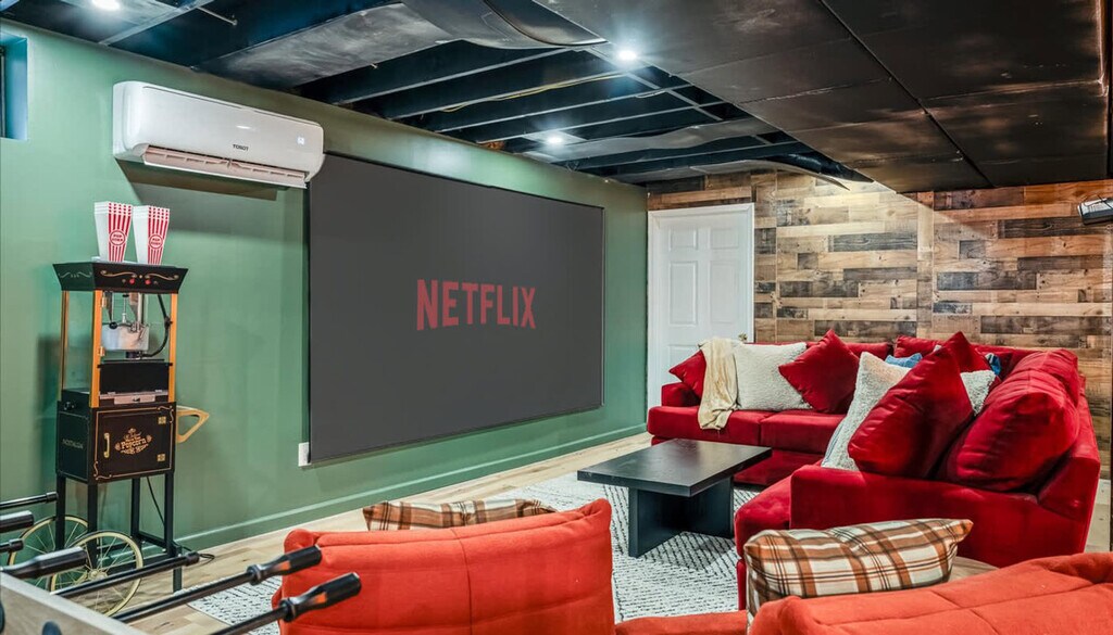 The advertised rate of $13,972/month is the lowest available price, based on a 30 day(s) stay with a move-in date of March 2, 2026. Rates vary depending on the duration of stay, season, and other parameters. For exact pricing and additional pricing components, please visit our website and enter your desired move-in and move-out dates. The rate is applicable when billed upfront; it can be higher if billed in multiple payments. Feel at home in this 6-bedroom luxury home in East Stroudsburg, PA, offering everything you need for an amazing vacation. This expansive retreat is designed for large groups, family reunions, and friend getaways. It features 6 bedrooms, 4.5 bathrooms, a chef’s kitchen that is fully stocked with high-end appliances, a large refrigerator, ample cabinetry, a large island with high seating, a Keurig and drip coffee maker, and direct patio access. The living room includes a smart TV, a large plush sofa, an indoor fireplace with sitting area, and direct access to the patio. For entertainment, there is a home theater with plush seating and a popcorn machine, a pool table, ping pong, foosball, air hockey, shuffle board, darts, a gym, and a kid's room with arcade machines, Pop-A-Shot, indoor wall climbing, a rope net hammock, a ball pit, wall tic tac toe, kids chairs and table, and a chess set. Up to 2 dogs are allowed for a fee of $125 per stay. The heated pool fee is $100 per night and must be heated for the entirety of your stay. We require at least a 3-day notice before your arrival if you'd like the pool heated. Parking is available in the driveway for 6-8 cars. Located along Canal Road in East Stroudsburg, this neighborhood offers a quiet, scenic setting in the heart of the Pocono Mountains. You’re just minutes from the Delaware Water Gap National Recreation Area, local hiking trails, and outdoor activities, with easy access to downtown East Stroudsburg’s shops, restaurants, and cafes. Nearby attractions include river activities and skiing at Shawnee Mountain. No cats are allowed. We kindly ask that your dog is crate trained and that you pick up after your dog. For safety and sanitation reasons, pets are not allowed in the pool. No parties are allowed, and violations may result in immediate termination of the stay. Street parking is not permitted and parking is available in the driveway only. During periods of snow or ice, smaller vehicles may have difficulty accessing the property and a 4-wheel drive vehicle is strongly recommended during the winter months. Guests must be 21 years or older to book this property. Check-in is at 4pm and check-out is at 10am. Registration Number: STR-2025-36 [SI]