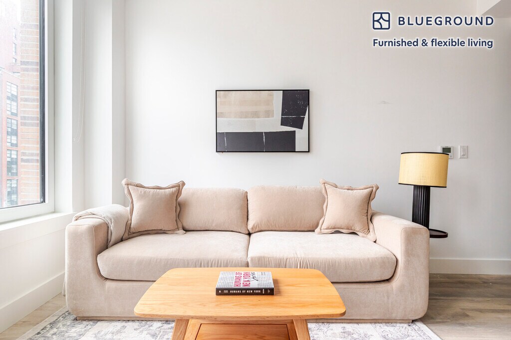 Discover the best of New York, with this one bedroom apartment in Alphabet City. It’ll be easy to simply show up and start living in this furnished apartment with its fully equipped kitchen, living room, and our dedicated, on-the-ground support. (ID #NYC2057) The advertised rate of $5,060/month is the lowest available price, based on a 6 month(s) and 13 day(s) stay with a move-in date of October 7, 2025. If you’re looking for a 1-year stay, the rate is $5,180/month. Rates vary depending on the duration of stay, season, and other parameters. For exact pricing and additional pricing components, please visit our website and enter your desired move-in and move-out dates. The rate is applicable when billed upfront; it can be higher if billed in multiple payments. Brokers are welcome to reach out. Were you looking for an unfurnished lease? Try Blueground instead and upgrade from unfurnished to furnished living: - Furnished at rates comparable to unfurnished - No setup or furniture costs - save thousands - Move-in ready - save time, just bring your suitcase Designed with you in mind Thoughtfully designed with bespoke finishes, modern furnishings, and a fully equipped kitchen, you’ll enjoy that “I’m home” feeling with this Blueground apartment. Whether you’re lounging in your bright living room streaming the latest and greatest entertainment on the smart TV or premium wireless speaker, or getting some well-earned rest on the superior quality mattress with luxury linens, you’ll fall in love with everything this Alphabet City apartment has to offer. This apartment also offers in-apartment laundry. Sleeping arrangements Queen Bed, 63in/160cm Amenities Building amenities unique to this one bedroom apartment include an on-site: - Doorman - Dryer - Elevator - Washing machine - Media room - Pets allowed - Rooftop BBQ Arrival and ongoing support The entire apartment is yours to enjoy! Throughout your stay, you’ll have access to our Client Experience team through the Blueground App. You can schedule additional cleanings, submit maintenance requests, and view our neighborhood recommendations with just a few taps. We’ll share all details upon confirmation of your stay. Other things to note Building amenities may have an extra cost. This Blueground apartment has flexible lease options, allowing you to book it for one month, a year, or more. Pets are welcome, though weight limits and breed restrictions apply and may incur fees. Brokes CYOF. We take great pride in ensuring every photo displayed is shot in our own units with our actual furnishings. That said, we regularly refresh our decor and furniture arrangement, which may differ from what’s pictured.