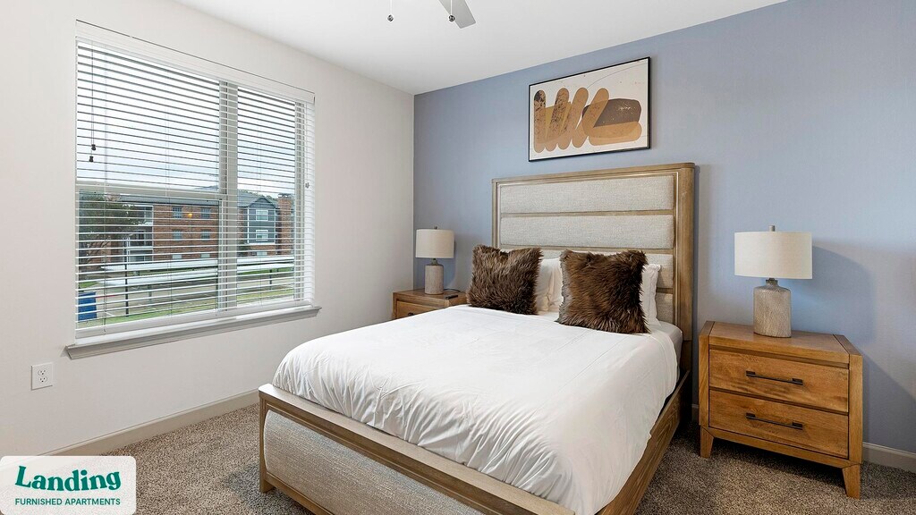 Landing offers flexible lease terms from weeks to months. Please always visit our website or contact us for the latest pricing & availability. Stay longer, save more: 6-Month Minimum base rent: starts at $1857/mo 12-Month Minimum base rent: starts at $1857/mo Landing offers flexible leases across a network of over 35,000 fully-furnished apartments throughout 375+ cities so you can rent on your terms, practically anywhere, and avoid the hassle of paying deposits or application fees. Visit to learn about all the benefits of a Landing membership, see our competitive up-to-date pricing, explore available apartments, take virtual tours, and make reservations online without jumping through traditional rental hoops. Landing's apartments at Riverside Place are designed for comfortable, easy living, with the ability to stay as long as you like. Experience living with Landing Every apartment is outfitted with all the modern essentials including: custom-designed furnishings, a fully-equipped kitchen with deluxe stainless steel appliances, a gourmet coffee maker, premium linens, Smart TVs, and incredibly fast, reliable internet for working from home. When you live with Landing, you'll enjoy a hassle-free experience with the added benefit of 24/7 access to our dedicated member experience team. Some of the nitty-gritty: a background check and proof of income are required; we're completely smoke-free; bundled utility packages and pricing vary based on length of stay; pet-friendly options available; listed price reflects a 12-month minimum stay.
