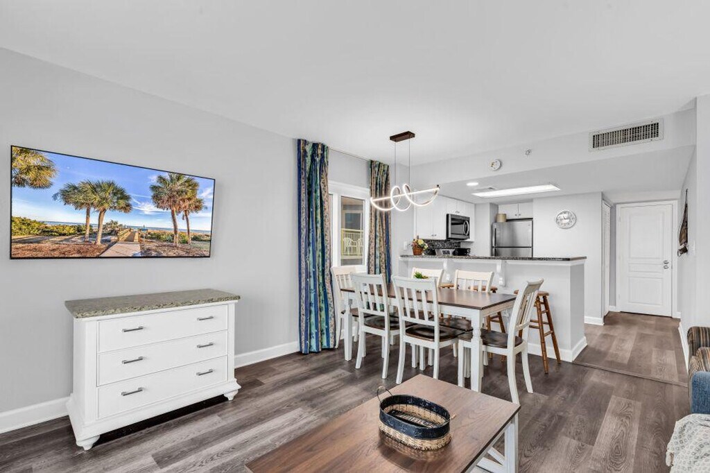Welcome to your dream vacation spot, a luxurious 2-bedroom beachfront retreat where the ocean takes center stage. Start your mornings on the private balcony, savoring breathtaking beach views and the soothing sound of waves. Inside, enjoy a thoughtfully designed space with a fully equipped kitchen to whip up your favorite meals, a charming dining area for family feasts, and a cozy living room featuring a flat-screen TV for unwinding after a day of adventure. Step outside to discover resort-style amenities, including sparkling shared pools, invigorating hot tubs, and direct beach access for endless sun-soaked fun. Whether you're traveling with family or friends, this exceptional property promises comfort, relaxation, and unforgettable memories along the pristine Myrtle Beach shoreline. Two parking passes are provided for use at the parking garage across the street. Local attractions include Cherry Grove Pier, a popular local landmark and fishing spot offering beautiful views of the Atlantic Ocean, and Alligator Adventure, a nearby wildlife park featuring a variety of reptiles, including alligators, snakes, and turtles. Barefoot Landing offers a shopping, dining, and entertainment complex with a range of stores, restaurants, and live entertainment. T.I.G.E.R.S. Preservation Station is a wildlife exhibit that allows visitors to interact with and learn about various exotic animals, including tigers and other big cats. The House of Blues Myrtle Beach is a well-known music venue and restaurant, featuring live performances by a variety of artists and bands. Smoking is not allowed in the unit or on the balcony. Any violation of the smoking policy will result in a $250 fine, in addition to any cleaning costs. No pets are allowed, and any violation of this policy will incur a $200 fine. House parties and illegal substances are strictly prohibited and grounds for immediate eviction. Leaving the unit later than the check-out time will incur a late check-out penalty starting from $500. No items should be dropped or thrown from the balcony. If you exceed the maximum allowed number of occupants, a penalty of $100 will be applied. [SI]