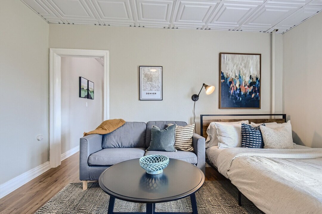 The advertised rate of $2,247/month is the lowest available price, based on a 1 month(s) stay with a move-in date of April 13, 2026. Rates vary depending on the duration of stay, season, and other parameters. For exact pricing and additional pricing components, please visit our website and enter your desired move-in and move-out dates. The rate is applicable when billed upfront; it can be higher if billed in multiple payments. Feel at home in this large 420 sqft studio, located on the 2nd floor of the building. Enjoy tons of natural light from the large east-facing windows throughout. This newly renovated apartment, furnished by our designer in Fall 2022, features a comfy queen bed and linens, and a stocked kitchen. Plenty of closet space is available, and more storage is available upon request. Enjoy a coffee or a glass of wine from the bistro set on your semi-private balcony off the kitchen. Amenities include all utilities and internet, a smart TV for your own streaming services, and free communal laundry in the basement. A propane grill is available for use. Located one block from City Park and five minutes from Cheesman Park and Botanic Gardens, this apartment is in a safe and quiet neighborhood. It's eight blocks to Sprouts Farmers Market, eight minutes to Cherry Creek Shopping District, 10 minutes to downtown Denver, RiNo, and LoHi, 30 minutes to Red Rocks, and 1 hour and 30 minutes to ski resorts. Nearby hospitals include St Joseph, Presbyterian St Luke’s, and Rose (5 minutes away), and UC Health University of CO and Children’s Hospital CO (15 minutes away). Free street parking is available; on the immediate block, it's limited to 2 hours from 8am-6pm Monday through Friday, but unlimited on nights, weekends, and holidays. On adjacent blocks, it’s unlimited, free parking. You can apply for a 90-day parking pass to park in the 2-hour zone directly in front of the building without restrictions. Check-out time is 10 AM, and failure to check out on time will incur a $50 fee for every additional 30 minutes. This apartment is dog friendly, but has a strict no cats policy. Pet rent is $90 per dog per month. A warning will be given for any reported noise disturbances, and additional disturbances will result in eviction from the property without any refund. Includes a great work-from-home workspace in the bedroom/den and fast internet with 300mgps download and 10mgps upload. Shared router may or may not be in-unit. [SI]