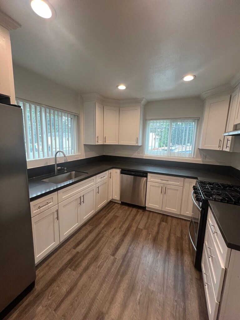 For touring, text This is a beautiful newly renovated 3 bedroom, 2 bath unit with beautiful views of the mountains. Features laminate flooring throughout, a newer kitchen complete with newer cabinets and granite counters with stainless steel stove, dishwasher, fridge, and a deep in-mounted sink, newer bathrooms with modern fixtures and tiled enclosure, recess lighting, brand new central air condition unit, new windows, and design doors. Large closet. Washer and dryer in unit. Enjoy the close proximity of restaurants, shops, and cafes Silverlake and Atwater has to offer. There is a $500 pet deposit. Service animals and ESA pet must have an obedience training completion certificate and a doctor's letter. There is a breed restriction and weight limit of 15lbs at maturity. Limit one pet.