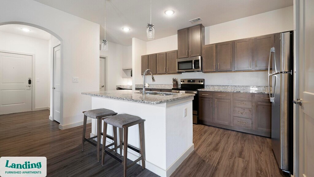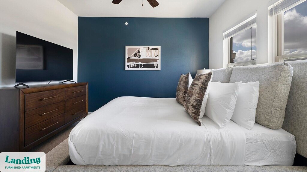 Landing offers flexible lease terms from weeks to months. Please always visit our website or contact us for the latest pricing & availability. Stay longer, save more: 6-Month Minimum base rent: starts at $1893/mo 12-Month Minimum base rent: starts at $1829/mo Landing offers flexible leases across a network of over 35,000 fully-furnished apartments throughout 375+ cities so you can rent on your terms, practically anywhere, and avoid the hassle of paying deposits or application fees. Visit to learn about all the benefits of a Landing membership, see our competitive up-to-date pricing, explore available apartments, take virtual tours, and make reservations online without jumping through traditional rental hoops. Landing's apartments at Ryze at Sunfield are designed for comfortable, easy living, with the ability to stay as long as you like. Experience living with Landing Every apartment is outfitted with all the modern essentials including: custom-designed furnishings, a fully-equipped kitchen with deluxe stainless steel appliances, a gourmet coffee maker, premium linens, Smart TVs, and incredibly fast, reliable internet for working from home. When you live with Landing, you'll enjoy a hassle-free experience with the added benefit of 24/7 access to our dedicated member experience team. Some of the nitty-gritty: a background check and proof of income are required; we're completely smoke-free; bundled utility packages and pricing vary based on length of stay; pet-friendly options available; listed price reflects a 12-month minimum stay.