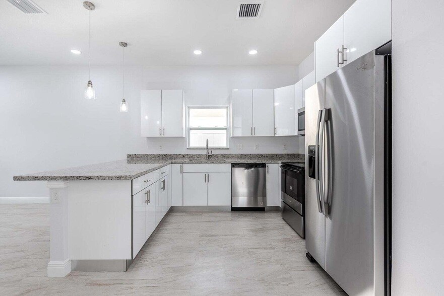 Beautiful 3/2 modern open plan with granite countertops in kitchen and bathrooms, walk in closet, led light, impact windows, stainless steel appliances, paved driveway. Centrally located off major roadways, minutes from downtown West Palm Beach and surrounding areas.