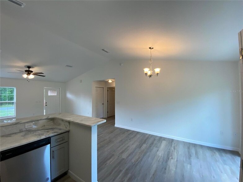 Custom Home - Desirable SW Ocala neighborhood 3/2/2 ** Wont Last**Enjoy this Beautiful Home located in the desirable SW Ocala neighborhood. Enjoy this Beautiful Home located in the desirable SW Ocala neighborhood. Home offers a spacious split plan with cathedral ceilings in the living room and kitchen. Kitchen design features, Stainless appliances and upgraded fixtures throughout, with stunning granite countertops! You will enjoy entertaining in this kitchen with its large serving counter in kitchen is perfect for entertaining with an additional sliding glass door leading to the backyard! Upgraded vinyl plank flooring throughout. Granite counters in bathrooms and kitchen. Two car garage. Allows large dogs by approval only, Non-Smoking Home. Renter's Insurance is required! First and Security required to Move-In Our property offers deposit-free leasing (for qualified renters).Available with no security deposit (for qualified renters)! There are restrictions on pets, if pets are allowed, there will be additional fees required. By applying to lease you will have to create either a pet/animal profile or a no-pet profile
