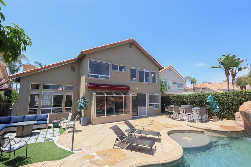 Available for lease, this stunning executive residence in the prestigious Rancho Niguel community offers a sophisticated, turnkey lifestyle with breathtaking panoramic views. Perfect for entertaining, the home s open floor plan features soaring ceilings, an expansive living room, and a family room, each with its own fireplace. The chef s kitchen is impeccably appointed with a built-in Sub Zero refrigerator, premium appliances, and elegant granite countertops, creating an impressive hub for any gathering. A main floor bedroom with an adjacent, fully remodeled bathroom provides the ideal space for a private home office or guest quarters. The resort-style backyard is a private oasis designed to impress, featuring a sparkling pool with waterfalls and slides, a spa, and two firepits set against a backdrop of majestic city light and mountain vistas. This is a rare opportunity to lease a meticulously upgraded home that perfectly blends luxury, elegance, and the quintessential Southern California indoor-outdoor entertaining experience.