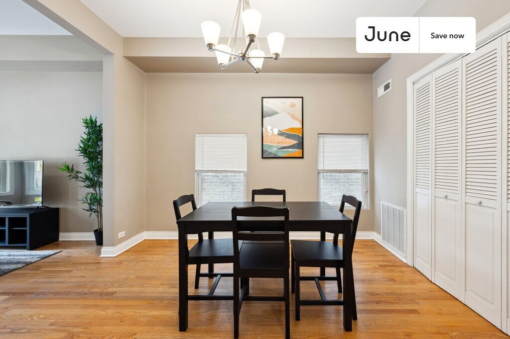 3 bedroom in Logan Square on flexible lease terms. This 3 bedrooms / 1 bath apartment on the Logan Square is available on a 12 month lease or a flexible short term (31 to 364 days) lease. You pick your custom start and end date. Monthly rent rate is determined by furnishing preference, move-in date and move-out date. Speak to a June representative for recommendations on the best stay duration for the lowest rate. Amenities of this home: Furnished Common Areas, Wi-Fi - Paid separately (High-Speed), Guarantors Allowed, 32-inch Flat-Screen TV, Dining area, Paid parking, Laundry - Paid separately (in building), Hardwood Flooring, Microwave, Oven, Refrigerator, Air Conditioning | HVAC, also, this unit is conveniently located, several local parks, restaurants and bars are just minutes away. About June Homes: Welcome to the easiest rental experience of your life. Rent furnished or unfurnished apartments on a 12 month lease or a flexible short term (31 to 364 days). As a resident, you’ll have access to 24/7 support and monthly cleanings of the home’s shared spaces. Sign up now to apply online for your next home with June. Brokers welcome! Contact us for more details. Speak to a June representative for recommendations on the best stay duration for the lowest rate, and learn more about this home on the June website. Use this listing ID when speaking to June team: #1847