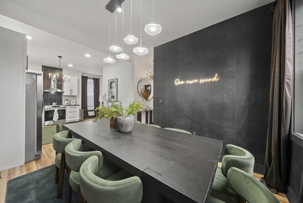 Feel at home in this newly designed and fully remodeled home with 5 beds and 2.5-bathrooms, a vibrant, design-forward stay located in the heart of King-Lincoln Bronzeville, just under 10 minutes from both Downtown Columbus and Ohio State University. This home is ideal for groups, families, and weekend getaways looking for space, personality, and a centrally located stay. Professionally styled with bold colors and modern finishes, this home is designed for gathering and entertaining. The main level features an 8-player poker table and a magnetic game table with chess and tic tac toe. The living room is modern and inviting with plenty of seating, a large TV, and an NBA Jam arcade machine. Adjacent to the living room, the dining area features a table that seats 8 and extends up to 10. The garage has been set up as a dedicated recovery space with a dry sauna. There are TVs in 3 bedrooms. Up to 2 dogs are welcome for a flat fee of $125. Requests for a 3rd or 4th dog are subject to approval and an additional $100 fee. Whether you’re visiting for an OSU weekend, a downtown Columbus trip, or a group getaway, this home delivers style, space, entertainment, and an unbeatable location in one memorable stay. Absolutely no parties are allowed. This home is monitored by neighbors and staff who notify us instantly if a party or event takes place. If an unauthorized gathering happens, your reservation will be terminated on the spot and you’ll be required to vacate immediately without a refund. Any cleanup related to a party or "gathering" no matter the size will also incur additional cleaning fees and labor/material fees for any damages that were caused. Please keep noise to a minimum when outside. Quiet hours are from 10 PM to 8 AM. Excessive noise may result in a $500 fine due to past neighbor complaints. No smoking is allowed inside the house, and there is a $500 fine for violation. Pets must be disclosed and approved in writing before your stay. Undisclosed pets will result in a $150 fee and may lead to cancellation without refund. No cats are allowed. The third-floor primary suite includes a dedicated office set-up. [SI]