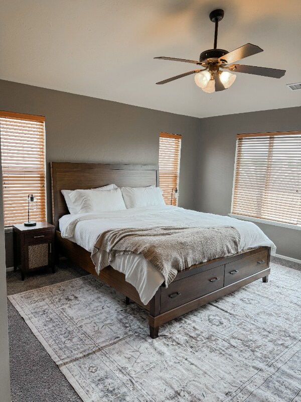 Property Id: 1549915 This centrally located fully furnished home is best suited for business travelers and temporary housing. It features three bedrooms, two bathrooms, and all the amenities needed for a comfortable stay. The main living area is an open-concept space furnished with comfortable reclining sofas and a flat-screen smart TV. The kitchen is equipped with newer appliances, including a refrigerator, stove, oven, microwave, dishwasher, and all the utensils and cookware needed to prepare a delicious meal. The primary bedroom features a king-sized bed, a flat-screen smart TV, a private ensuite double sink bathroom, and a full walk-in closet. The home is situated in a quiet neighborhood with ample street parking available. You are just a short drive away from numerous local attractions, such as restaurants, shopping centers, and hospitals. There is a separate, private basement apartment with current tenants. The two units' only common shared areas are the lower backyard and driveway.