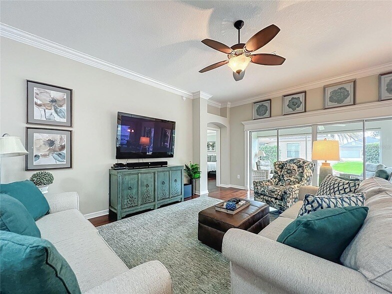 Experience the best of The Villages lifestyle in this beautifully appointed home (Gardenia Model) located on a quiet loop with outstanding curb appeal. Thoughtfully designed with a light, bright, and open floor plan, this residence offers comfortable living with spaces perfect for both relaxing and entertaining. Inside, you ll find spacious living and dining areas filled with natural light, complemented by neutral finishes that create a warm and inviting atmosphere. The well-appointed kitchen features ample cabinetry and flows seamlessly into the main living area ideal for everyday living. The bedrooms are generously sized, with the primary suite providing a private retreat. Step outside to the screened lanai and enjoy peaceful mornings or relaxing evenings while soaking in the Florida breeze. Additional conveniences include indoor laundry, a 2 car garage with a dedicated golf cart garage, making it easy to enjoy all The Villages amenities. Located just minutes from shopping, dining, championship and executive golf courses, recreation centers, and The Villages renowned town squares, this home offers both comfort and convenience in a prime location. No smoking. Rental application and background check required. Schedule your private showing today and start living the active, carefree lifestyle The Villages is known for!
