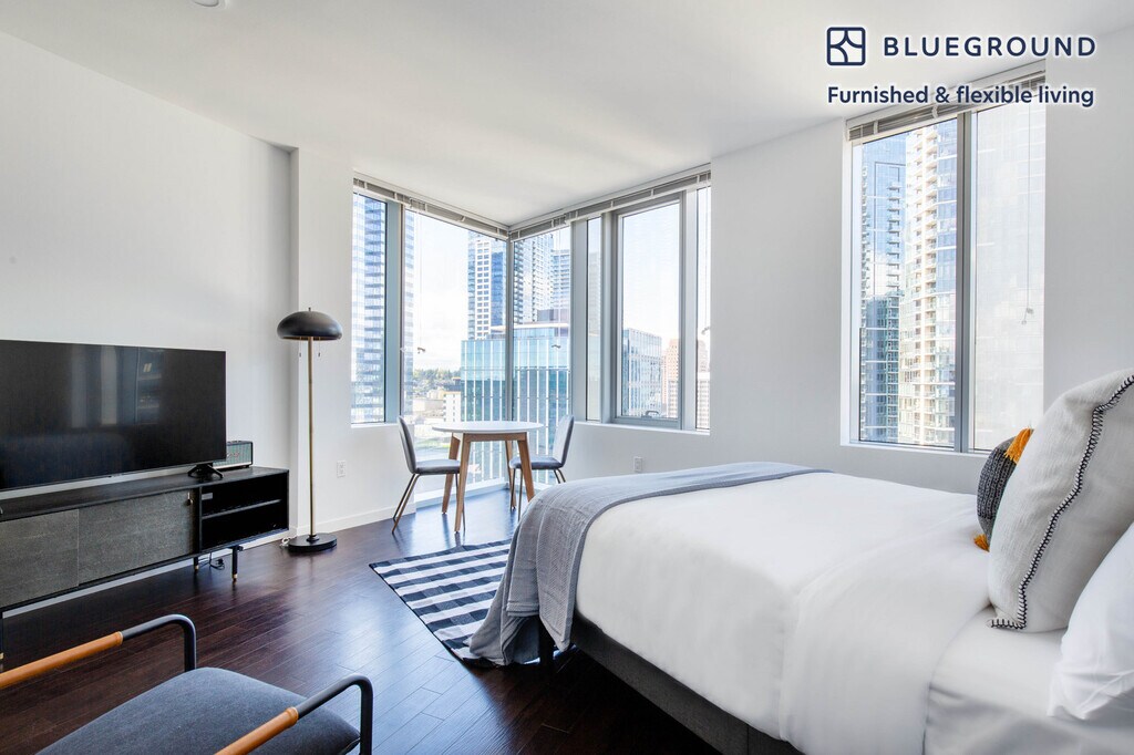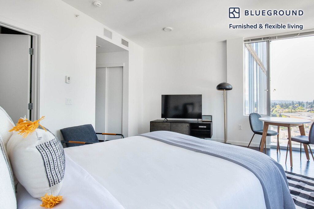 Discover the best of Bellevue, with this studio apartment in West Bellevue with high floor views over the city. It’ll be easy to simply show up and start living in this furnished apartment with its fully equipped kitchen, living room, and our dedicated, on-the-ground support. (ID #SEA117) The advertised rate of $2,130/month is the lowest available price, based on a 1 month(s) and 24 day(s) stay with a move-in date of March 1, 2026. If you’re looking for a 1-year stay, the rate is $2,580/month. Rates vary depending on the duration of stay, season, and other parameters. For exact pricing and additional pricing components, please visit our website and enter your desired move-in and move-out dates. The rate is applicable when billed upfront; it can be higher if billed in multiple payments. Brokers are welcome to reach out. Were you looking for an unfurnished lease? Try Blueground instead and upgrade from unfurnished to furnished living: - Furnished at rates comparable to unfurnished - No setup or furniture costs - save thousands - Move-in ready - save time, just bring your suitcase Designed with you in mind Thoughtfully designed with bespoke finishes, modern furnishings, and a fully equipped kitchen, you’ll enjoy that “I’m home” feeling with this Blueground apartment. Whether you’re lounging in your spacious living room streaming the latest and greatest entertainment on the smart TV or premium wireless speaker, or getting some well-earned rest on the superior quality mattress with luxury linens, you’ll fall in love with everything this West Bellevue apartment has to offer. This apartment also offers in-apartment laundry. Sleeping arrangements Queen Bed, 63in/160cm Amenities Building amenities unique to this studio apartment include an on-site: - Basketball Court - Doorman - Dryer - Elevator - Game room - Swimming pool - Washing machine - Lounge - Media room - Parking - Pets allowed Arrival and ongoing support The entire apartment is yours to enjoy! Throughout your stay, you’ll have access to our Client Experience team through the Blueground App. You can schedule additional cleanings, submit maintenance requests, and view our neighborhood recommendations with just a few taps. We’ll share all details upon confirmation of your stay. Other things to note Building amenities may have an extra cost. This Blueground apartment has flexible lease options, allowing you to book it for one month, a year, or more. Pets are welcome, though weight limits and breed restrictions apply and may incur fees. Parking is offered based on availability and is subject to a fee. We take great pride in ensuring every photo displayed is shot in our own units with our actual furnishings. That said, we regularly refresh our decor and furniture arrangement, which may differ from what’s pictured. Also note - Ongoing construction in close proximity; construction sounds may occasionally be heard [SI]