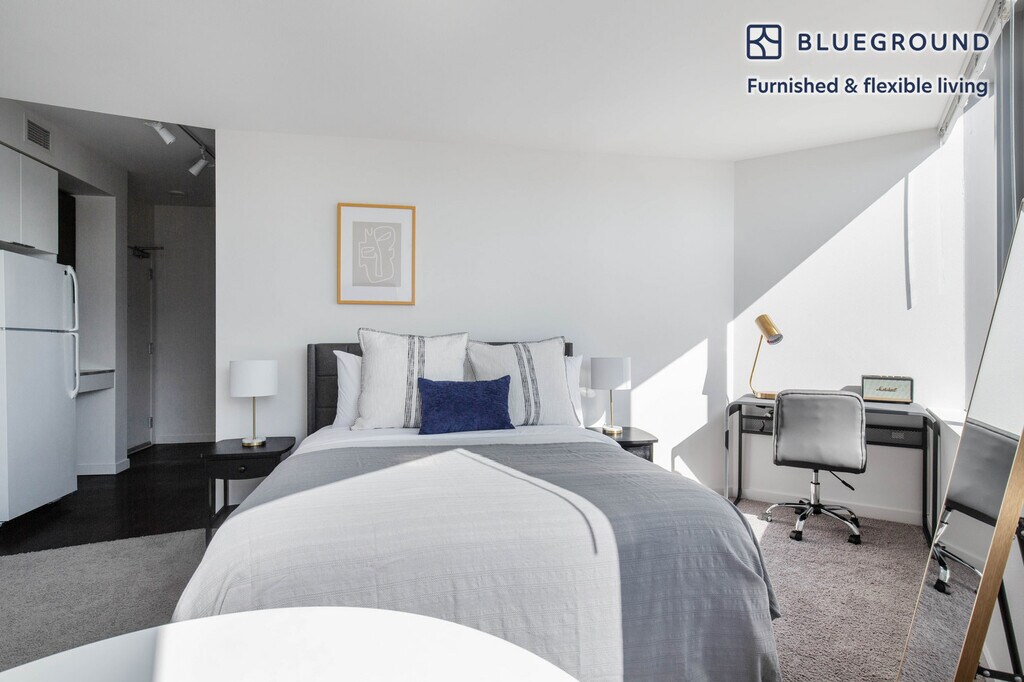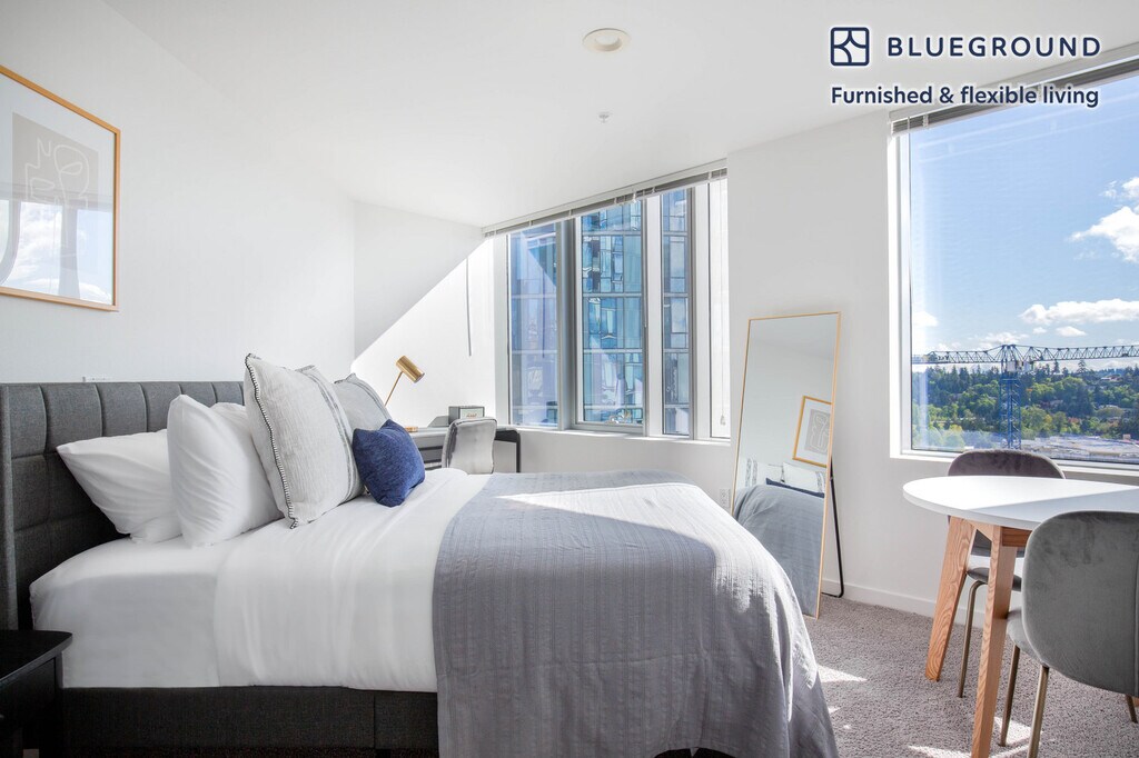 Feel at home wherever you choose to live with Blueground. You’ll love this spacious West Bellevue furnished studio apartment with its modern decor, fully equipped kitchen, and cheery living room with great high floor views. Ideally located, you’re close to all the best that Bellevue has to offer! (ID #SEA118) The advertised rate of $1,710/month is the lowest available price, based on a 1 month(s) and 27 day(s) stay with a move-in date of January 19, 2026. If you’re looking for a 1-year stay, the rate is $3,090/month. Rates vary depending on the duration of stay, season, and other parameters. For exact pricing and additional pricing components, please visit our website and enter your desired move-in and move-out dates. The rate is applicable when billed upfront; it can be higher if billed in multiple payments. Brokers are welcome to reach out. Were you looking for an unfurnished lease? Try Blueground instead and upgrade from unfurnished to furnished living: - Furnished at rates comparable to unfurnished - No setup or furniture costs - save thousands - Move-in ready - save time, just bring your suitcase Designed with you in mind Thoughtfully designed with bespoke finishes, modern furnishings, and a fully equipped kitchen, you’ll enjoy that “I’m home” feeling with this Blueground apartment. Whether you’re lounging in your sophisticated living room streaming the latest and greatest entertainment on the smart TV or premium wireless speaker, or getting some well-earned rest on the superior quality mattress with luxury linens, you’ll fall in love with everything this West Bellevue apartment has to offer. This apartment also offers in-apartment laundry. Sleeping arrangements Queen Bed, 63in/160cm Amenities Building amenities unique to this studio apartment include an on-site: - Basketball Court - Doorman - Dryer - Elevator - Game room - Swimming pool - Washing machine - Lounge - Media room - Parking - Pets allowed Arrival and ongoing support The entire apartment is yours to enjoy! Throughout your stay, you’ll have access to our Client Experience team through the Blueground App. You can schedule additional cleanings, submit maintenance requests, and view our neighborhood recommendations with just a few taps. We’ll share all details upon confirmation of your stay. Other things to note Building amenities may have an extra cost. This Blueground apartment has flexible lease options, allowing you to book it for one month, a year, or more. Pets are welcome, though weight limits and breed restrictions apply and may incur fees. Parking is offered based on availability and is subject to a fee. We take great pride in ensuring every photo displayed is shot in our own units with our actual furnishings. That said, we regularly refresh our decor and furniture arrangement, which may differ from what’s pictured. Also note - Ongoing construction in close proximity; construction sounds may occasionally be heard [SI]