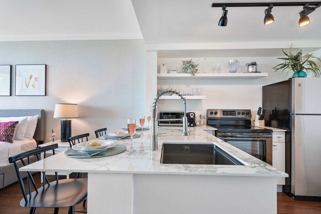 The advertised rate of $5,258/month is the lowest available price, based on a 30 day(s) stay with a move-in date of May 13, 2026. Rates vary depending on the duration of stay, season, and other parameters. For exact pricing and additional pricing components, please visit our website and enter your desired move-in and move-out dates. The rate is applicable when billed upfront; it can be higher if billed in multiple payments. Feel at home in this studio in Coconut Grove, offering a calm and intentional stay. This studio features a king-size bed with hotel-quality linens, a private bathroom with plush towels and toiletries, a TV, high-speed Wi-Fi, and a fully equipped kitchen that includes a fridge, microwave, dishwasher, and coffee maker. Bathrobes and thoughtful details are included for your comfort. On-site self-parking is available for $33.90 per night with in-and-out privileges. A pack and play and high chair are available by advance reservation and subject to availability for an additional cost. Coconut Grove is one of Miami’s most walkable and historic neighborhoods, with leafy streets, a relaxed village feel, and many restaurants and cafés. You’ll be steps from CocoWalk for dining, cafes and boutique shops, Peacock Park and David Kennedy Park for bayfront walks, and The Barnacle State Park for historic gardens and shade. The Vizcaya Museum, Coral Gables, Key Biscayne and Brickell are a short ride away. Check-in is at 4:00 PM and check-out is at 11:00 AM. Pets are not permitted as per building regulation. No parties or loud gatherings are allowed. No smoking or vaping of any substance is allowed anywhere in the building or unit. Keep balcony doors closed at all times to prevent humidity damage to walls and ceilings. Do not block curtains or tamper with any safety devices or equipment in the unit. If the unit has a dividing door (for adjoining suites), please leave it open unless you have booked both sides; if closed, a neighbor could accidentally enter the wrong room. Includes a workspace-friendly layout. [SI]