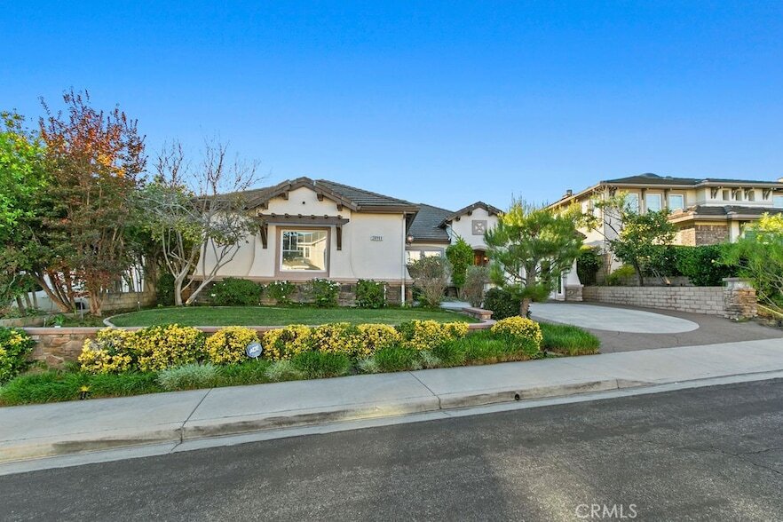 Available NOW! Welcome to this spectacular single-level home boasting 3 spacious bedrooms plus a large, dedicated executive office complete with impressive wrap-around built-in cabinets and a desk. The entry opens to the elegant formal living room and dining room, perfect for hosting, complemented by a nearby powder room ideal for guest convenience. Beyond the formal spaces, the floor plan opens to a sunlit family room featuring custom built-ins and an inviting gas fireplace with custom tiles as a stunning focal point. This space flows directly into the expansive kitchen, which offers abundant storage cabinetry, full complement of appliances, and a separate eat-in breakfast nook. The primary suite is a private retreat, offering a luxurious ensuite bathroom with a walk-in shower and dual-sink vanity, a generous walk-in closet, and private sliding door access directly to the backyard. The two additional bedrooms are spacious, feature ample closets, and share the well-appointed main full bathroom. Functionality is key with an inside laundry room adjacent to the 2-car garage with direct access. Outside, the spacious backyard is an entertainer's dream, featuring a custom-tiled BBQ counter with built-in grill, upper and lower patios with the lower section covered by a beautiful pergola with shades, all overlooking the unobstructed canyon behind with access to a walking trail and truly mesmerizing sunset views. This exceptional property is situated in the highly prestigious guard-gated neighborhood of Hillcrest Estates, offering residents the ultimate in security, privacy, and proximity to many nearby shops and restaurants.