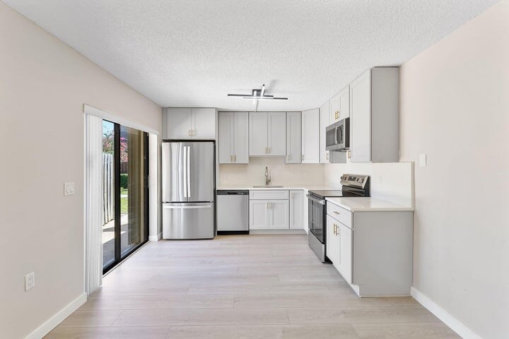 Property Id: 2412179 Updated 2-bedroom, 2½-bath townhouse located in the heart of Delray Beach. This move-in-ready residence features brand-new luxury vinyl flooring throughout, a completely renovated kitchen with modern cabinetry, sleek countertops, and all new stainless-steel appliances. The spacious layout offers two generously sized bedrooms with primary en-suite bath upstairs, plus a convenient half bath on the main level--perfect for guests. Enjoy seamless indoor-outdoor living with your own private courtyard, ideal for entertaining, relaxing, or creating your own tropical retreat. Nestled in Delray Oaks West, this desirable community with a prime location close to I-95, shopping, dining, and the beach, offers style, comfort, and convenience all in one. Listed by: Century 21 Stein Posner