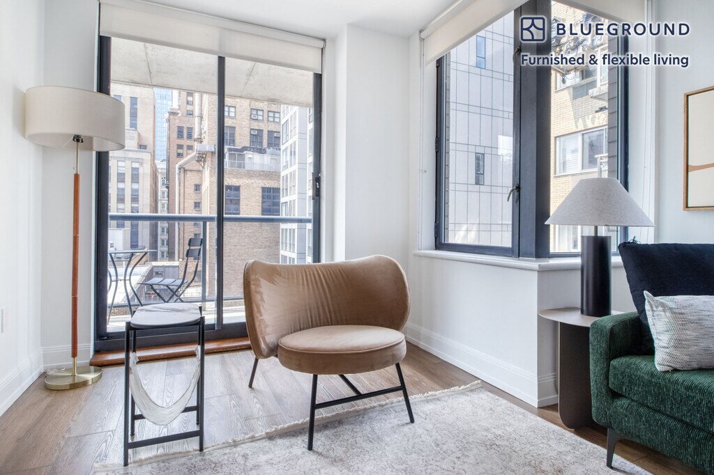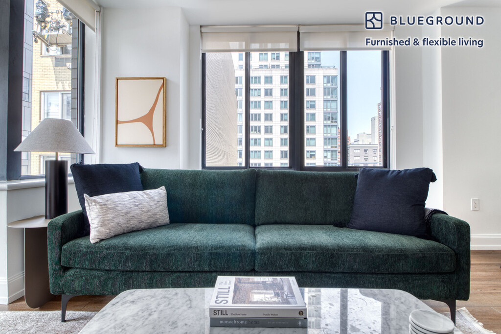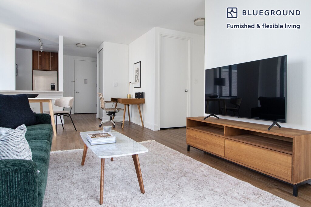 Show up and start living from day one in New York with this bright one bedroom Blueground apartment. You’ll love coming home to this thoughtfully furnished, beautifully designed, and fully equipped Gramercy Park home with stunning balcony views over the city. (ID #NYC1158) The advertised rate of $5,720/month is the lowest available price, based on a 1 month(s) and 24 day(s) stay with a move-in date of December 10, 2025. If you’re looking for a 1-year stay, the rate is $7,610/month. Rates vary depending on the duration of stay, season, and other parameters. For exact pricing and additional pricing components, please visit our website and enter your desired move-in and move-out dates. The rate is applicable when billed upfront; it can be higher if billed in multiple payments. Brokers are welcome to reach out. Were you looking for an unfurnished lease? Try Blueground instead and upgrade from unfurnished to furnished living: - Furnished at rates comparable to unfurnished - No setup or furniture costs - save thousands - Move-in ready - save time, just bring your suitcase Designed with you in mind As with any Blueground apartment, you’ll find a thoughtfully designed space complete with beautiful furniture and a fully equipped kitchen in this one bedroom property. And, thanks to our superior quality mattresses, luxury linens, and towels, you can relax knowing you’ll always feel comfortably at home. When you’re ready for some fun, you can take in the New York vibes or bring the entertainment to you with the premium wireless speaker or smart TV. This apartment also offers in-apartment laundry. Sleeping arrangements Queen Bed, 63in/160cm Amenities Building amenities unique to this one bedroom apartment include an on-site: - Doorman - Dryer - Elevator - Washing machine - Lounge - Pets allowed Arrival and ongoing support The entire apartment is yours to enjoy! Throughout your stay, you’ll have access to our Client Experience team through the Blueground App. You can schedule additional cleanings, submit maintenance requests, and view our neighborhood recommendations with just a few taps. We’ll share all details upon confirmation of your stay. Ideally Located This furnished apartment is located in Gramercy Park, in central Manhattan and takes its name from a quaint, fenced-in private park. Home to the Roosevelts back in the 1800s, as well as many politicians and artists, the area was designed to house fashionable families. Today, it attracts young families and students who seek an inviting place to call home. On weekends, the benches and beautiful trees make the surrounding area of Gramercy Park the ideal place to jog or relax. Its central location makes it easy to get downtown or easily commute uptown for work. Second and Third Avenue offer a great variety of fine dining and bars, ideal for weekday socializing. Union Square, just a few steps away, is a bustling shopping and transportation hub. Grand Central station is only an 18-minute subway ride away. Other things to note Building amenities may have an extra cost. This Blueground apartment has flexible lease options, allowing you to book it for one month, a year, or more. Pets are welcome, though weight limits and breed restrictions apply and may incur fees. Brokes CYOF. We take great pride in ensuring every photo displayed is shot in our own units with our actual furnishings. That said, we regularly refresh our decor and furniture arrangement, which may differ from what’s pictured. [SI]