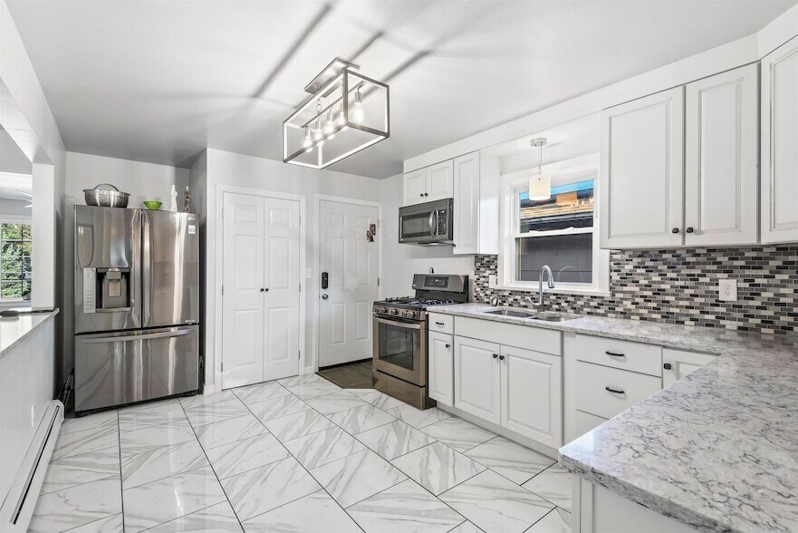 Spread out in this large 3 bedroom 1 bath home. This top floor apartment gets direct east exposure from the spacious bedrooms, a peak of the NYC Skyline, and plenty of sunshine throughout the day. Gleaming hardwood floors lead you to a renovated modern kitchen with beautiful stainless steel appliances, lots of counter space and storage galore. Located just around the corner from Berry Lane Park, and 1 block away from the Light Rail Station this apartment offers an easy commute.
