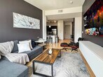 Located in the vibrant heart of Deep Ellum, this Dallas retreat offers the perfect blend of comfort and convenience. Modern and spotless, the apartment is designed for both relaxation and productivity, featuring high-speed Wi-Fi. Rest easy in a plush queen bed and take in breathtaking views of Downtown Dallas. With top restaurants, lively nightlife, cultural museums, and green parks nearby, the location is unmatched. Skip the usual hotel rooms and standard rentals and feel at home here. Step inside this spacious and stylish 2-bedroom, 2-bathroom apartment, an ideal retreat for a comfortable and hassle-free stay in Dallas. The open-concept layout is filled with natural light and accented by sleek LED lighting and modern décor. Each bedroom is a tranquil escape, featuring cozy details, stunning evening views, and floor-to-ceiling windows that highlight warm wood floors and elegant finishes, creating a relaxing, home-like atmosphere. Enjoy carefully chosen amenities and thoughtful touches throughout to make your stay seamless and enjoyable. The living room features a cozy sofa bed and armchair arranged around a stylish coffee table, and a 65” 4K HDR Smart TV with Netflix for entertainment. The primary bedroom offers a queen-size bed with a plush foam mattress, premium linens, and pillows, a large walk-in closet, soft reading lights, and a dedicated workspace with a desk and chair, perfect for remote work. The primary bathroom includes a bathtub/shower combo, vanity with sink and mirror, toilet, fresh towels, and essential toiletries. The second bedroom has two full-size beds with high-quality foam mattresses and soft bedding, a walk-in closet, and gentle lighting for a relaxing nighttime ambiance. The second bathroom features a shower/tub combo, vanity with sink and mirror, toilet, towels, and bathroom essentials. Cook and dine with ease in the fully stocked kitchen, which includes a full-size refrigerator/freezer, oven, stovetop, built-in dishwasher, Keurig coffee maker with supplies, electric kettle, cookware, dishes, utensils, and more. The apartment maintains strict cleaning standards between guests to ensure a safe, spotless environment. Pets are welcome based on size, and a pet cleaning fee applies. For stays of 1–4 nights, the fee is $25 per night. For stays of 5–29 nights, the total fee is $200, and for stays of 30+ nights, the total fee is $300. Situated in the vibrant heart of Deep Ellum, this apartment offers an unmatched location with top restaurants, lively nightlife, cultural museums, and green parks nearby. Enjoy breathtaking views of Downtown Dallas and experience the best the city has to offer right at your doorstep. Guest verification is required before check-in, and guests may be asked to provide a valid government-issued photo ID, confirmation of contact details, and secure portal verification. In some cases, a background check may be required. Information is used only for screening and never stored beyond verification. Guests must sign a rental agreement upon reservation approval, agreeing to rental terms and conditions and submitting a valid ID before check-in. Verification must be completed within 24 hours of booking, or 1 hour for same-day reservations, to receive check-in details. Failure to complete may result in cancellation. For your safety, the property includes hallway security cameras and a Minut device monitoring indoor noise levels. The primary bedroom includes a dedicated workspace with a desk and chair, perfect for remote work. High-speed Wi-Fi is available throughout the apartment, ensuring a seamless work-from-home experience. [SI]