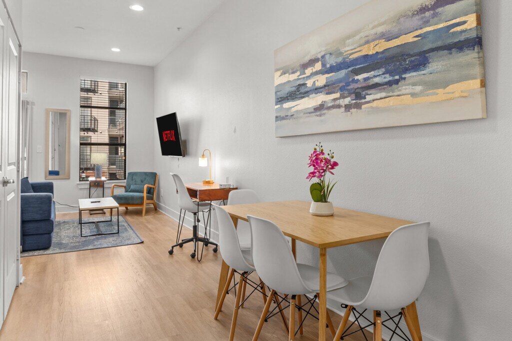 The advertised rate of $5,867/month is the lowest available price, based on a 30 day(s) stay with a move-in date of July 29, 2026. Rates vary depending on the duration of stay, season, and other parameters. For exact pricing and additional pricing components, please visit our website and enter your desired move-in and move-out dates. The rate is applicable when billed upfront; it can be higher if billed in multiple payments. Welcome to this 1-bedroom apartment in Deep Ellum, Dallas’ Arts & Music Hub! Near the Medical District, Baylor University Medical Center, the Dart Train, and Children’s Hospital, this apartment sleeps 4 and offers free garage parking. Feel at home in this modern, urban-designed, fully furnished apartment. This spacious apartment has many amenities for your convenience, including a 4K UHDTV with Roku, a fully equipped and stocked kitchen with a Keurig coffee and tea maker, air conditioning and heating, an iron and ironing board, towels, hangers, a hair dryer, bed linen, and pillows. Starter basic toiletries such as soap and toilet paper are provided. For business travelers, quality printers are available in the business center. A pack-n-play and high chair are complimentary. Well-behaved pets are welcome with a fee of $50 per pet for reservations of 1-5 nights, $100 per pet for reservations of 6-20 nights, and $175 per pet for long-term reservations of 21+ nights. The entire apartment is yours to enjoy, including a fitness center, pool, lounge, and business center. Dedicated parking is included, and guest parking is available upon request. The apartment is close to all the action, including Baylor University Medical Center (0.6 miles), the Medical District (4.5 miles), Deep Ellum (0.3 miles), the Cotton Bowl Stadium (1.2 miles), the Malcolm X at Junius bus stop (3 minutes walking distance), Baylor Station (2 minutes walking distance), the American Airlines Center (2.8 miles), and Dallas/Fort Worth International Airport (20.9 miles). The neighborhood is known for its vibrant street murals, quirky art galleries, and long-time concert venues for indie and blues. Public bus stations are located across Deep Ellum, and the neighborhood has very easy access to major highways including the Dart Train Station across the street from the building. This building is located in an urban setting, and city noise is to be expected during your stay, including but not limited to trains, buses, automobiles, aviation, and construction. No cats are allowed. An extra fee of $50 per person or pet, per night, will be charged for any not declared on your reservation. A $1,000 charge, possible cleaning fees, and a $500 ozone treatment will be charged for smoking of any kind. Guests must remove their own garbage during long-term stays. Any fines related to garbage or automotive issues imposed by the apartment complex or city are the guest’s responsibility. A cleaning is required once per month for long-term stays, and the fee will be automatically applied to your original payment method. Monthly inspections will be conducted with a 24-hour notice. Check-in is any time after 4:00 PM, and check-out is by 10:00 AM. A late check-out fee of $75 for every 30 minutes beyond the 10:00 AM check-out time will be charged. Includes a private workspace and fast Wi-Fi. [SI]