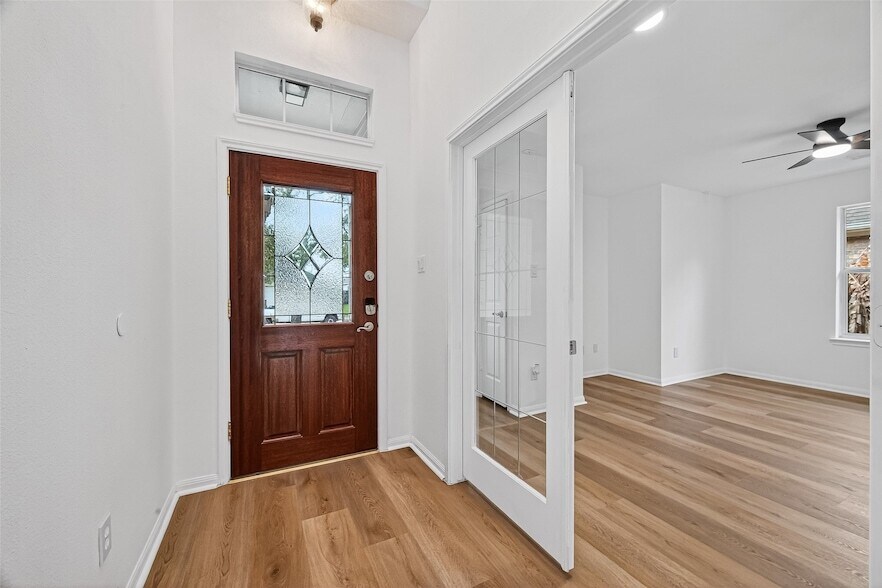 *Brand new Luxury Vinyl Plank flooring throughout the living areas and bedrooms, stylish new lighting fixtures, and fresh interior paint for a clean, modern feel* Welcome home to this beautifully updated single-story home for lease in the highly desirable Shadow Creek Ranch community, located in an EXCELLENT school zone and walking distance to Brothers Elementary. This bright and open floor plan features 3 bedrooms & 2 full baths, a versatile flex space perfect for a study, playroom, or home office, a laundry room, and a formal dining area. The kitchen offers ample cabinet storage and gas cooking, while the private primary suite is tucked at the back of the home for added comfort. Residents enjoy fantastic community amenities including pools, tennis courts, lakes, parks, and scenic walking trails, all while being conveniently located near shopping, dining, and major highways. Washer, dryer, and refrigerator are included, making this move-in ready home the perfect place to live.