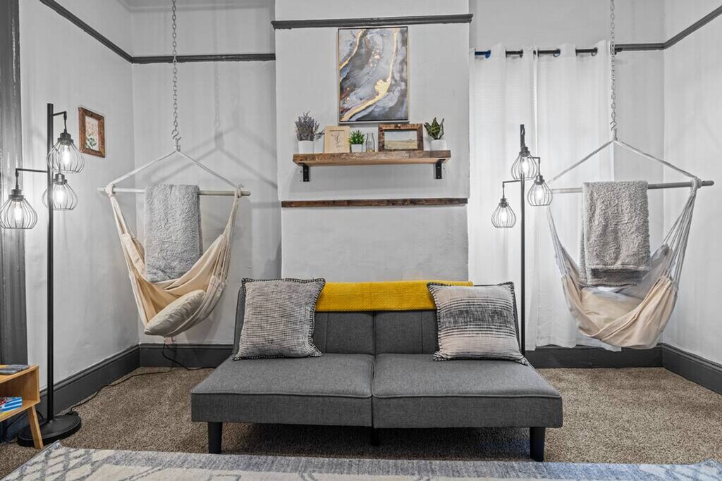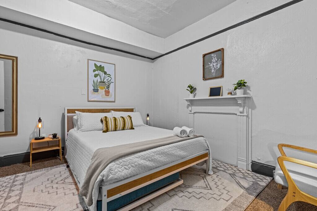 Feel at home in this 2-bedroom, 1-bath duplex in Portsmouth, Virginia, offering 950 sq ft of living space. This apartment has all you need for your family or business trip, including a stocked kitchen and a living room with seating for 6 and a smart TV for you to log in to your favorite streaming services. Each bedroom is equipped with memory foam mattresses, white noise machines, and blackout curtains for cozy sleep. The bathroom has a shower tub combo with all the essentials and fast Wi-Fi is available. Parking is available for one car on-site with additional street parking available. Located in Brighton Portsmouth, the apartment is in an area directly adjacent to the naval shipyard, an eclectic mix of industrial, residential, and business properties. While restaurants and entertainment in the immediate area are sparse, the neighborhood is ten minutes from downtown Portsmouth, an artsy area with a wide variety of restaurants and entertainment. It's a 5-minute walk to the Portsmouth Shipyard, a 10-minute drive to downtown restaurants and the Naval Medical Center, a 15-minute drive to downtown Norfolk, a 20-minute drive to outlet shopping and Ocean View beach, and a 30-minute drive to Virginia Beach. Public transportation is readily accessible, with the Hampton Roads Transit (HRT) bus system serving the area and the Portsmouth Transit Center providing connections to other parts of the region. Historic Olde Towne Portsmouth, the Naval Shipyard Museum, and the Portsmouth City Park are all within easy reach. Quiet hours are between 10 PM and 8 AM. Pets are not allowed, and evidence of pets will incur additional cleaning fees. Smoking or vaping inside the house or on the property will result in a $200 fine. Events, parties, confetti, and glitter are prohibited, and if found, will incur additional cleaning fees. [SI]