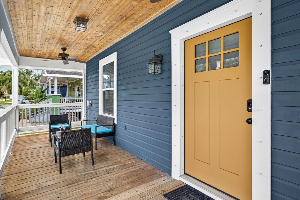 This 3-bedroom, 2-bath Tampa Heights bungalow blends classic charm with modern comfort. With a spacious kitchen, in-home laundry, and a private fenced backyard, it’s the perfect home base for families, professionals, and anyone who wants to experience Tampa with ease. Family-friendly and sleeps 5 comfortably, this home features a fully equipped kitchen, washer and dryer, and a private backyard with covered dining. Step inside this updated bungalow and find an open layout designed for comfort and convenience. The bright kitchen anchors the home with granite counters, stainless appliances, and a large island for gathering, meals, or work. Each bedroom offers a quiet retreat, and the bathrooms bring spa-like touches for relaxation. The primary bedroom features a king bed, Smart TV, dresser, closet, and ensuite bath with soaking tub and walk-in shower. The second bedroom includes a queen bed, Smart TV, dresser, and closet, while the third bedroom offers a full bed with natural light. The living areas include an open living room with a sectional sofa and Smart TV, a dining table for 4 plus breakfast bar seating, and a fully stocked kitchen with cookware, dinnerware, glassware, and coffee maker. Board games and Smart TVs provide entertainment, and a full-size washer and dryer are available in the laundry closet. Outdoor spaces include a fenced backyard with a gazebo dining set and a covered front porch with seating for morning coffee or evening relaxation. Driveway parking is available for multiple vehicles. Pets are welcome with a fee of $100 per pet per stay, or per month for stays exceeding 28 days. Permits for professional video or photo shoots can be requested for a fee. Contact us for more information. This home is located in Tampa Heights, one of the city’s most vibrant historic neighborhoods. Guests love the central location, as you’re tucked into a quiet residential street but only minutes from everything Tampa has to offer. Armature Works and Riverwalk, with local dining, rooftop bars, and waterfront strolls, are just 5 minutes away. Seminole Heights, known for trendy restaurants, breweries, and coffee shops, is less than 10 minutes north. Downtown Tampa, featuring Amalie Arena, Sparkman Wharf, and the University of Tampa, is within a 10-minute drive. Hospitals and work hubs like Tampa General Hospital, St. Joseph’s, and Moffitt Cancer Center are easily accessible. Family-friendly outings such as ZooTampa, Florida Aquarium, and Busch Gardens are a short drive away. With easy access to I-275, you can get anywhere in Tampa Bay quickly, from the airport to the beaches. Quiet hours are from 8 PM to 8 AM, and noise levels must stay below 80 decibels. Indoor smoking and use of fireworks are prohibited, with a designated smoking area outdoors, 15 ft away from the property. Smoking violations or the presence of smoke smell may incur a $250 remediation fee minimum. Pets must be house-trained and groomed, with unattended service animals and ESA pets incurring a pet fee. Any necessary post-visit pest control or damage may result in additional fees. Check-in begins at 4 PM and check-out is by 10 AM, with late check-outs past 10 AM incurring a $50 fee. Outdoor security cameras and noise level detectors are installed for safety and are not actively monitored. Routine maintenance and valet trash service are part of the stay. Ensure appropriate trash sorting and lock all windows and doors when leaving the property. Report any issues or missing amenities for resolution within 24 hours. Violation of any house rules may result in removal from the home without a refund. The bright kitchen with a large island can serve as a versatile workspace for meals or work. [SI]