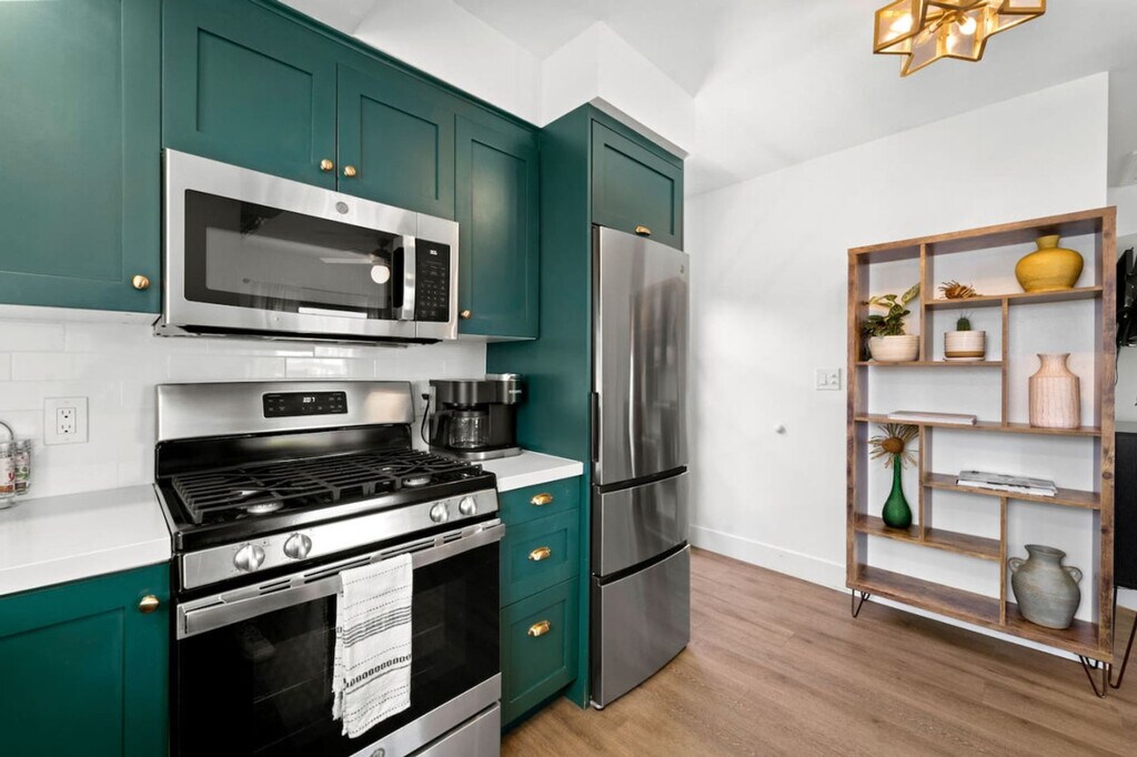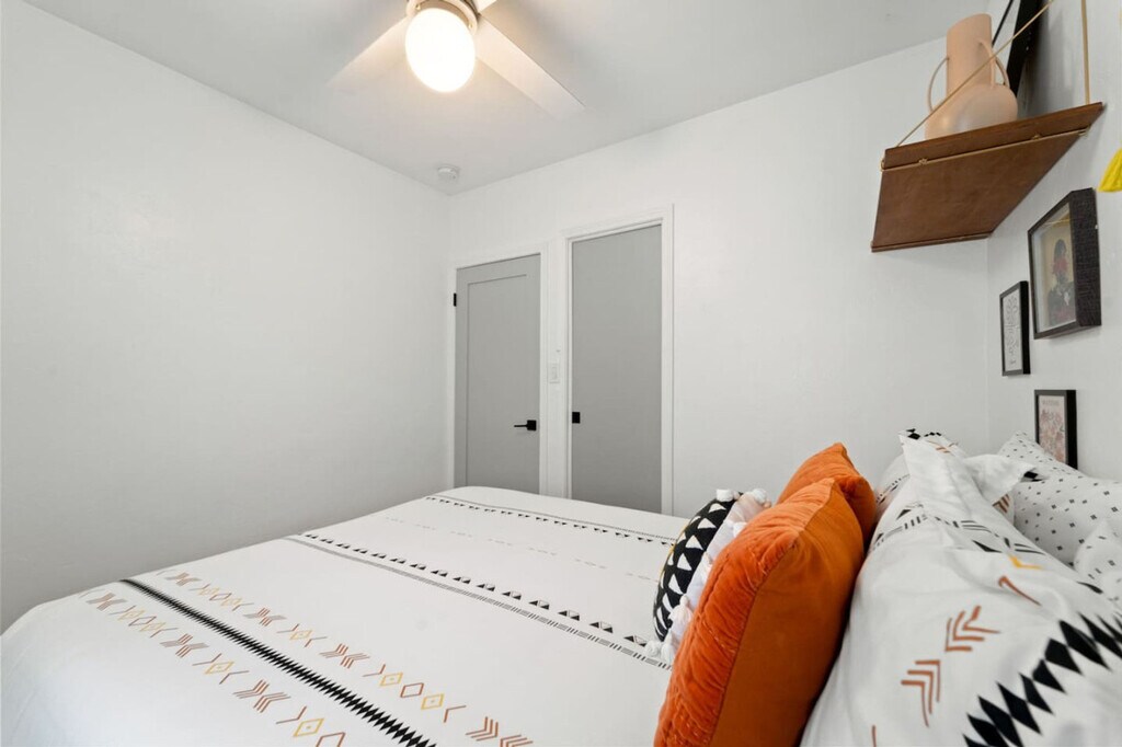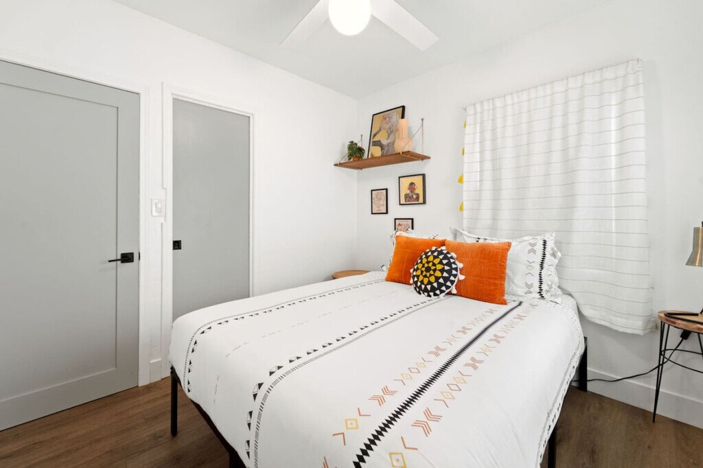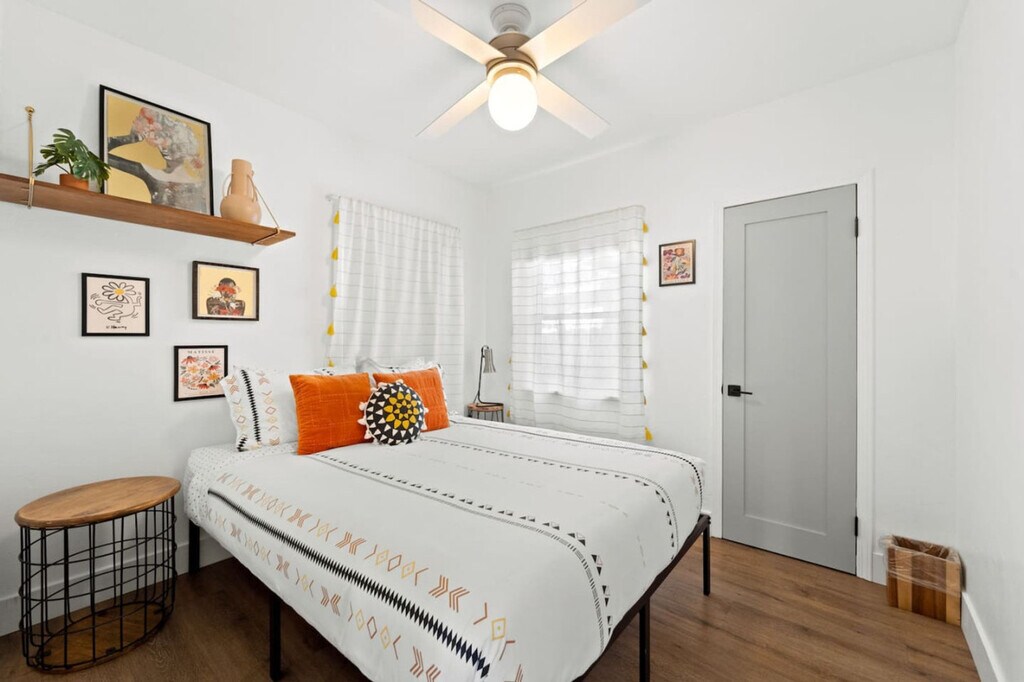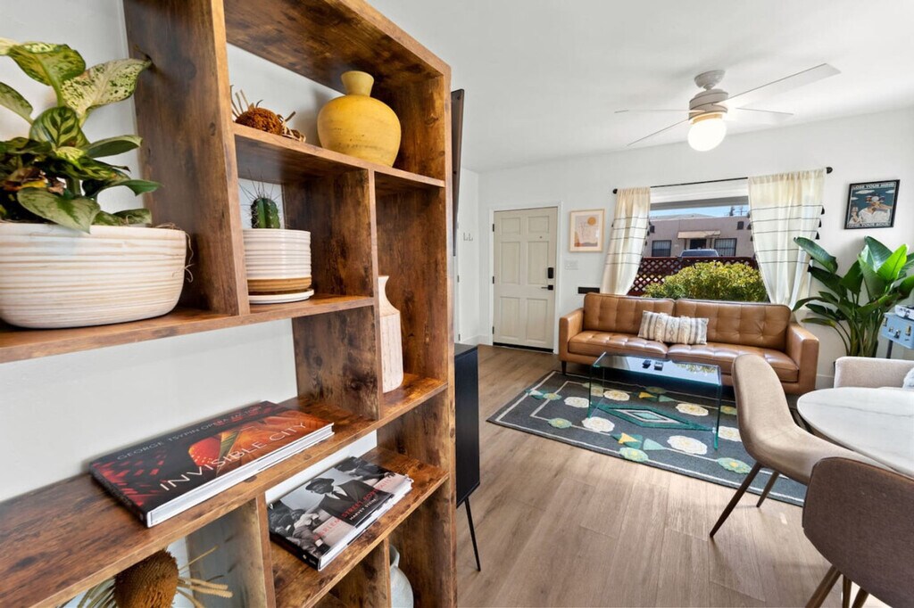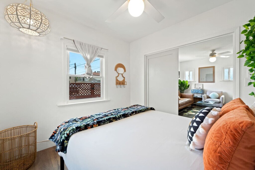 Experience the eclectic charm of North Park in this vibrant boho-retro home. Featuring a fun vibe with bright colors, lush plants, and a record player for your favorite vinyl tunes, this home offers the convenience of a full kitchen and dining area. Nestled in a quaint residential area, you're just steps from bustling University Avenue and El Cajon Boulevard, lined with diverse shops, eateries, and services. Perfectly situated for exploring the city, beach, and easy access to the airport, this home is ideal for an unforgettable San Diego stay. Step into the vibrant charm of North Park with this eye-catching, blue boho-retro home, accented by a cheerful yellow door and surrounded by lush cacti. The open-plan living and dining area is complete with a comfy brown leather couch, perfect for relaxing with vinyl tunes on the record player or getting lost in a good book. The fully equipped kitchen makes it easy to dine in or entertain. This quaint home comfortably accommodates four guests in two bedrooms, each featuring a cozy queen bed. Refresh and unwind in a full bathroom that includes both a bath and a shower. Enjoy the convenience of a washer and dryer with complimentary laundry pods and dryer sheets to keep you fresh throughout your stay. The home also has an AC unit, perfect for those warmer months. The property does not have private parking, all parking is on city streets. Guests will need to find available parking and adhere to all posted street parking signs. Pet-friendly accommodations are available, welcoming one dog only (up to 60 lbs) for a fee of $100 per stay. This fee helps cover the additional cleaning required for pet hair. If any waste beyond hair is found, an additional $200 cleaning fee will be charged. Guests are responsible for cleaning up after their pet, and dogs should not be left unattended in the home, as barking may disturb neighbors. North Park is known for its vibrant and eclectic atmosphere, characterized by a mix of historical charm and modern conveniences. This neighborhood is popular among young professionals and artists due to its lively arts scene, array of local craft breweries, trendy restaurants, and coffee shops. North Park is also recognized for its walkability, bike friendliness, and easy access to public transportation, making it convenient to get around without a car. The area has a strong sense of community, hosting various street fairs, farmers markets, and public events throughout the year. The vicinity of Polk Avenue is primarily residential but is close to major streets like University Avenue and El Cajon Boulevard, which are lined with shops, eateries, and services. The area is also known for its diversity and inclusion, appealing to a wide range of residents and visitors. The home sits quaintly behind a privacy fence, providing an added layer of security and privacy. As located in an urban neighborhood, guests should expect some noise and foot traffic from city traffic and streets outside of the unit. The property features an attached casita at the back, with both the main house and the casita having their own private, fenced entrances. Guests are requested to use their designated entrance for entering and exiting the property. Contactless, 24/7 check-in is available, allowing you to access the property at your leisure, day or night. Quiet hours are from 10 PM to 10 AM, and excessive noise or disturbances may result in immediate eviction without refund. Smoking or vaping is not allowed indoors, and any cleaning or damage costs will be charged to the primary guest. Late checkout may result in a fee of up to $200 unless approved in advance. Guests will enjoy exclusive access to the entire home and all its amenities during their stay. From the cozy interiors to the full kitchen and laundry facilities, every part of the home is open for your use and comfort, ensuring a private and uninterrupted experience. A digital house manual filled with useful information about the property and local recommendations is provided to make your stay as seamless as possible. [SI]
