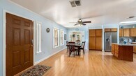 This tranquil property with long winding driveway offers three living structures strategically placed to the rear of the property for privacy. Short term rental is for the guest house location. The guest house is a well-maintained 3BR/2BA 1739 SQFT brick single story with reserved parking. Three month lease MAX with option to renew.