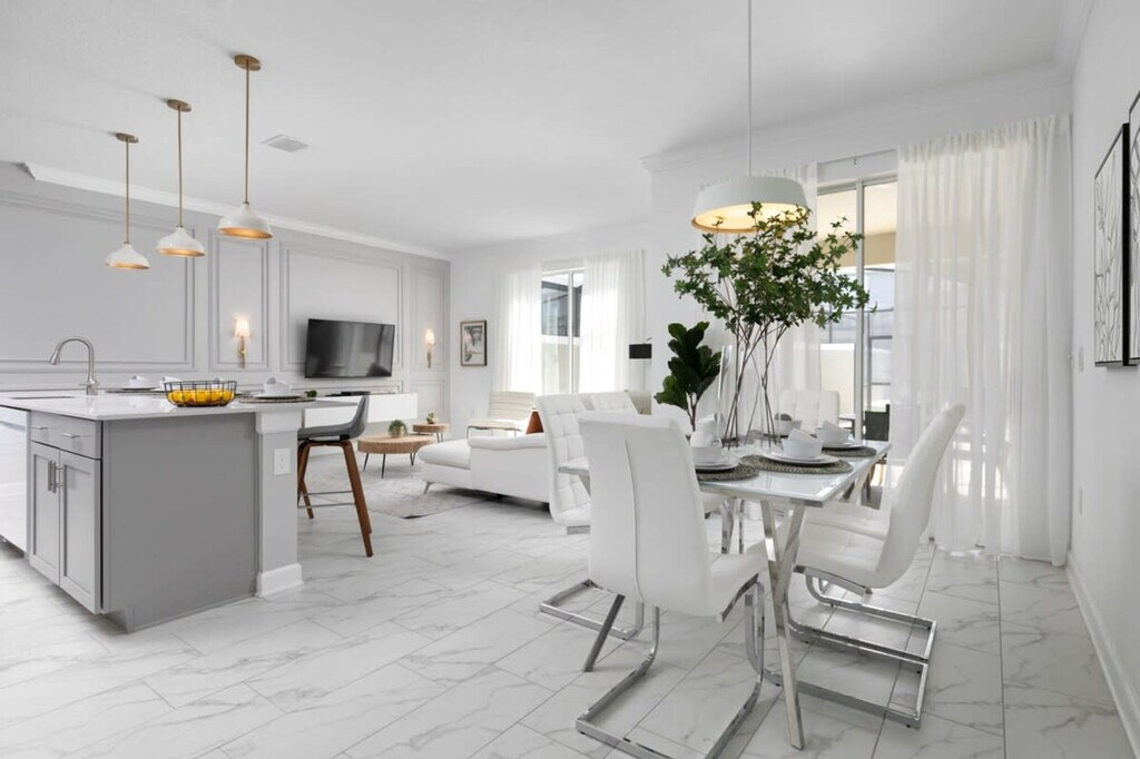 Experience the ultimate in luxury and comfort at this simply amazing 4-bedroom home. Chic and spacious, the living room seamlessly connects with the dining area and kitchen, offering a haven for relaxation. Accommodating up to 10 guests, this abode features a private pool for your exclusive enjoyment. Nestled in the prime location of Storey Lake, just a brief 10-minute drive from Disney parks, you'll have access to outstanding amenities, including two fantastic clubhouses boasting pools, a lazy river, fitness center, mini-golf, and more. Indulge in the epitome of luxury and comfort with this simply amazing 4-bedroom home. Elegantly chic and exuding an air of opulence, this residence offers a seamless integration of the living room, dining area, and a fully equipped kitchen, providing a perfect haven for relaxation. Every aspect of your family's comfort has been meticulously considered, ensuring a truly exceptional stay. Step out onto the patio, where a private heatable pool invites you to unwind in style. The first floor boasts a king bedroom with its own bathroom, providing utmost convenience. On the second floor, discover the lavish master king bed suite, an exquisite retreat for restful nights. The enchanting Mickey and friends themed bedroom awaits, featuring a double and a single bed. Sharing a bathroom with this magical space is the equally captivating Toy Story themed bedroom, adorned with a double and a single bed for a playful touch. For your convenience, a dedicated laundry room with washer and dryer is at your disposal. Stay seamlessly connected with free Wi-Fi and enjoy the ease of complimentary parking. Your journey begins with a thoughtful welcome kit, brimming with essential bathroom and kitchen amenities. Replenishment of bathroom and kitchen amenities is the guest's responsibility. Heating the pool is a paid service and there is also a fee charged to use the barbecue grill. Storey Lake Resort has the perfect location just 10 minutes from all major attractions and theme parks in Orlando, including Walt Disney World, Universal Resort, and Sea World. You will find fantastic resort amenities for the whole family to enjoy with a tiki bar, a resort-style pool with slides and lazy river, sports court, mini-golf, kayak, and fitness center. There are 2 clubs inside the property, one of them with a themed pirate pool that kids will love, just walking distance from the house. Located just off Osceola Parkway, the resort has easy access to restaurants, shopping, and supermarkets, all within a 5-minute drive. Quiet hours are between 22:00 and 8:00.