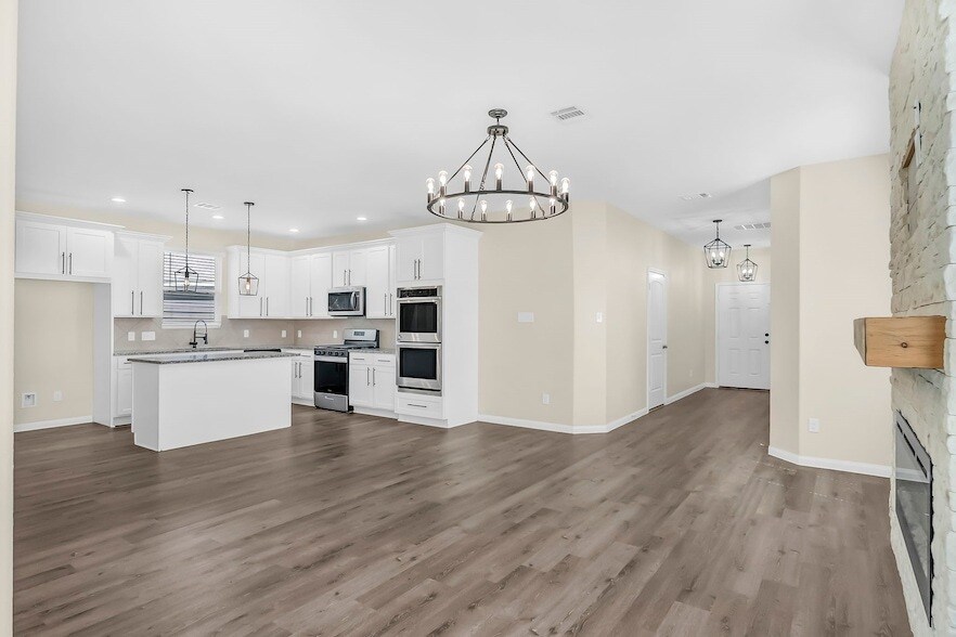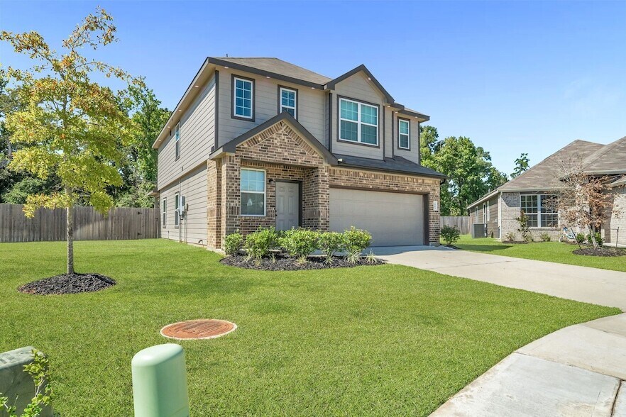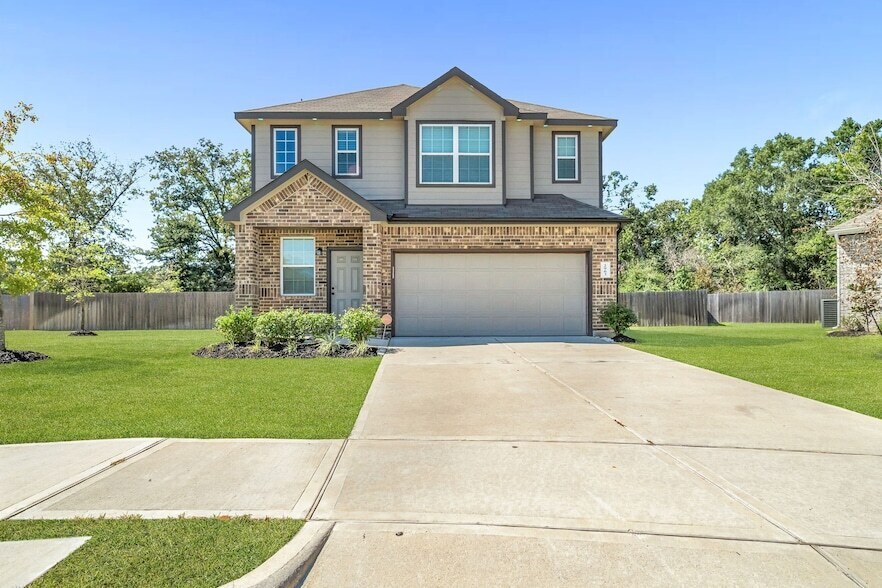 Discover this upgraded 4-bedroom, 3.5-bath home in Madison Bend, featuring a versatile first-floor guest suite. This home is Cul-de-sac home with big side yards and wide backyard, with green belt on back for privacy. Perfect for family with kids. The kitchen offers a spacious island, stainless steel appliances, ample cabinetry, and a double oven perfect for cooking enthusiasts. An open living area with a stone fireplace creates a warm gathering space. Enjoy pot lighting, a large lot with room to grow, and community amenities including a pool and covered park. Conveniently located near Lake Conroe, shopping, and more this gem won t last! All utilities should be paid by tenant. Home is available immediately.