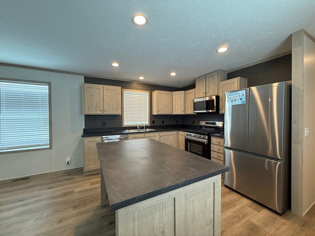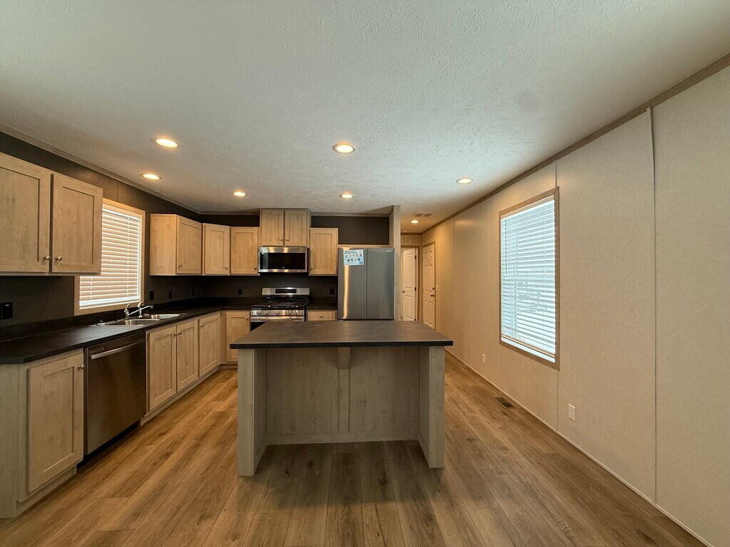 Step into this brand new 1056 sq. ft. 3 bedroom 2 bathroom home designed with a modern open floor plan that feels both spacious and inviting. The kitchen features a large island with additional seating, perfect for everyday living. The primary bedroom and bathroom are located on one end of the home, while two additional bedrooms and a second bathroom are positioned on the opposite end, creating a well balanced layout. Central air and energy efficient features ensure comfort in every season. Located in Carriage Way in Chesterfield MI, this home offers convenient access to the Hall Road M 59 corridor, shopping, dining, and nearby parks along Anchor Bay. This is your chance to secure a brand new home in a desirable location. Schedule your tour today and see it in person. Some photos have been virtually stagged!