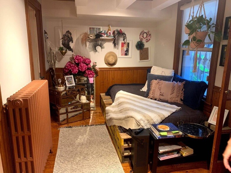 Charming Fort Greene 1BR w/ home office, large garden & patio, laundry in building, 1.5 blocks to Fort Greene Park The heart of Fort Greene is the perfect neighborhood in NYC, and this full-floor 1BR, bursting with character and historic appeal, is the perfect spot in it. The bedroom fits a king bed easily and features custom shelving, a marble fireplace and a walk-in closet. It opens into a cozy open kitchen with new stainless steel dishwasher, stove, and a spacious pantry. The living room leads you into a small, windowed nook perfect for a home office overlooking perhaps the biggest selling point of all - an 800 sq. ft. patio and garden oasis the previous tenant poured her heart into. Bathroom is clean and nice, featuring a clawfoot tub. Every inch of this apartment has light and a view of greenery. Custom, wide-plank floors were recently redone. Decorated tin ceilings, custom woodwork and exposed brick fill the space with charm. Laundry is available in the shared basement, as is storage for bikes. We're installing a virtual doorman system for packages and have window A/C units available for your use. Pets are great with approval. Neighborhood - Fort Greene Park with its weekly farmer's market is 1.5 blocks away, and its restaurant row offers a plethora of distanced outdoor dining options. BAM and Barclay's Center are both nearby, as well as Park Slope and Prospect Park within a short walk. Transportation - The C train at Lafayette is literally just out the door, the G at Fulton just a block or two further, and all the trains of Atlantic-Barclays under 10 minutes. This is a no smoking building. Pets Policy Let's discuss your pet! Cats and dogs may be allowed on a case-by-case basis. Comes with 2 window unit for AC.