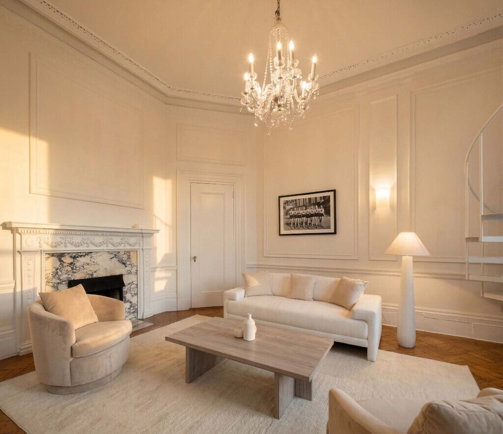 The advertised rate of $14,777/month is the lowest available price, based on a 1 month(s) stay with a move-in date of April 1, 2027. Rates vary depending on the duration of stay, season, and other parameters. For exact pricing and additional pricing components, please visit our website and enter your desired move-in and move-out dates. The rate is applicable when billed upfront; it can be higher if billed in multiple payments. Feel at home in this grand, lofted 1-bedroom parlor nestled in the heart of Greenwich Village. This apartment combines soaring 13-foot ceilings, oversized south-facing windows, and a north-facing Juliet balcony to offer a one-of-a-kind, elegant living experience in New York City. As one of the standout units in this beautifully maintained Greenwich Village townhouse, this lofted parlor apartment impresses with refined period details that blend classic charm with modern comforts. The living area features two decorative marble fireplaces, original parquet floors, and antique crystal chandeliers, creating an elegant space for both relaxation and entertaining. The renovated kitchen is equipped with top-of-the-line Sub-Zero and Bosch appliances, including a refrigerator, cooktop, oven, dishwasher, and microwave. Its open layout seamlessly connects to the living space, offering ample room for dining or casual gatherings. The sleeping loft comfortably accommodates a queen-size bed and provides generous space for lounging and storage. The bathroom has been thoughtfully updated with a glass-enclosed shower and a rain showerhead, combining modern convenience with refined design. Additional amenities include a two-zone split system A/C and an in-unit washer/dryer. Concierge service can coordinate cleanings and private events. Private chefs and excursions can be scheduled. Every element of the apartment—from its classic architectural features to its premium finishes—offers a sophisticated living experience in the heart of Greenwich Village. Excessive use of A/C (exceeding $250/month) will be billed back after move-out. Smoking is not allowed on the property. [SI]