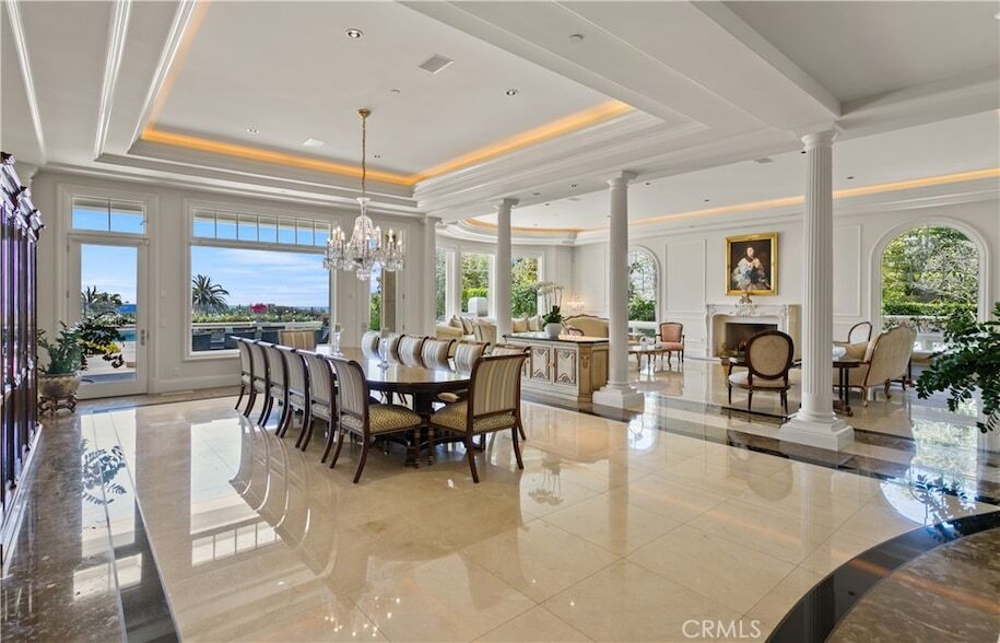 Majestically situated within the highly coveted guard-gated enclave of Pelican Hill, 3 Harbor Light presents an extraordinary opportunity to own a timeless estate with sweeping views of the Pacific Ocean, Catalina Island, and Newport Harbor. Set on an expansive 9,824 square foot lot, this palatial 6-bedroom, 7.5-bath residence is defined by grand scale, meticulous craftsmanship, and coastal elegance. A soaring double-height foyer introduces the home with dramatic presence, flanked by a sweeping staircase and bathed in natural light. The formal living and dining rooms exude classic sophistication, while the gourmet chef s kitchen boasts professional-grade appliances, custom cabinetry, and an oversized island ideal for entertaining. An adjacent family room opens seamlessly to the resort-style backyard, where panoramic views meet refined outdoor living. A covered lounge with fireplace, built-in BBQ/bar, and manicured landscaping frame the oversized pool and spa designed for both grand entertaining and quiet relaxation. The upper level hosts a sumptuous primary suite with dual bathrooms and closets, offering an ultra-luxury retreat that rivals any five-star resort. Additional en-suite bedrooms provide serene accommodations, each offering privacy and elegance. The lower level is a rare find featuring a state-of-the-art gym, and a 10-car subterranean garage ideal for the most discerning auto collector. With close proximity to world-class golf at Pelican Hill, upscale shopping and dining at Fashion Island, and award-winning schools, 3 Harbor Light is a trophy property that captures the essence of Newport Coast luxury living.