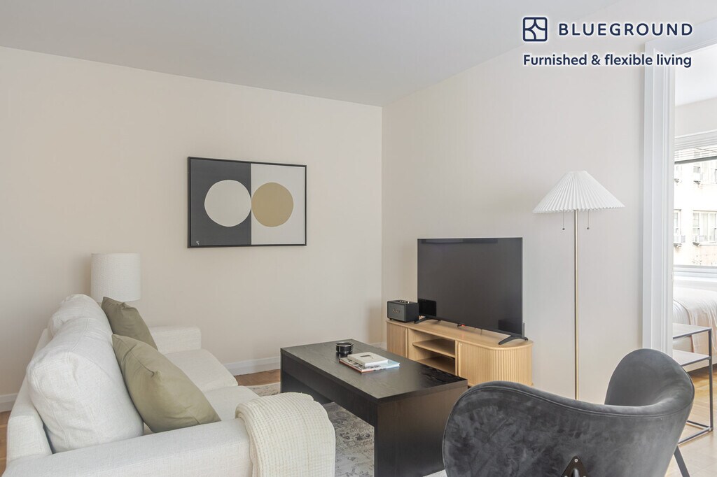 Discover the best of New York, with this two bedroom apartment in Murray Hill. It’ll be easy to simply show up and start living in this furnished apartment with its fully equipped kitchen, living room, and our dedicated, on-the-ground support. (ID #NYC1941) The advertised rate of $6,520/month is the lowest available price, based on a 12 month(s) stay with a move-in date of March 13, 2026. Rates vary depending on the duration of stay, season, and other parameters. For exact pricing and additional pricing components, please visit our website and enter your desired move-in and move-out dates. The rate is applicable when billed upfront; it can be higher if billed in multiple payments. Brokers are welcome to reach out. Were you looking for an unfurnished lease? Try Blueground instead and upgrade from unfurnished to furnished living: - Furnished at rates comparable to unfurnished - No setup or furniture costs - save thousands - Move-in ready - save time, just bring your suitcase Designed with you in mind Gorgeous furniture, fully equipped kitchen, smart TV, and a premium wireless speaker are just a few of the amenities you’ll find inside this two bedroom apartment. Ideally located in New York, you’ll find a lot to love outside as well. When you’re ready to relax, you’ll be happy to discover every Blueground bedroom comes with superior quality mattresses, luxury linens, and cozy towels. We handle everything so you can simply show up and start living. Sleeping arrangements Queen Bed, 63in/160cm Queen Bed, 63in/160cm Amenities Building amenities unique to this two bedroom apartment include an on-site: - Doorman - Dryer in building - Elevator - Washing machine in building - Lounge - Pets allowed Arrival and ongoing support The entire apartment is yours to enjoy! Throughout your stay, you’ll have access to our Client Experience team through the Blueground App. You can schedule additional cleanings, submit maintenance requests, and view our neighborhood recommendations with just a few taps. We’ll share all details upon confirmation of your stay. Ideally Located This furnished apartment is located in Murray Hill, a lively Midtown neighborhood. The active nightlife scene makes it increasingly ideal for youngsters and recent graduates. Simultaneously, families are relocating here as there are many good schools in close proximity. Murray Hill offers various destinations for culture-lovers. Namely, the New York Public Library and Bryant Park draw residents in from the rest of the city. Grand Central Station is only 5 minutes from Murray Hill by subway. Other things to note Building amenities may have an extra cost. This Blueground apartment has flexible lease options, allowing you to book it for one month, a year, or more. Pets are welcome, though weight limits and breed restrictions apply and may incur fees. Brokes CYOF. We take great pride in ensuring every photo displayed is shot in our own units with our actual furnishings. That said, we regularly refresh our decor and furniture arrangement, which may differ from what’s pictured. [SI]