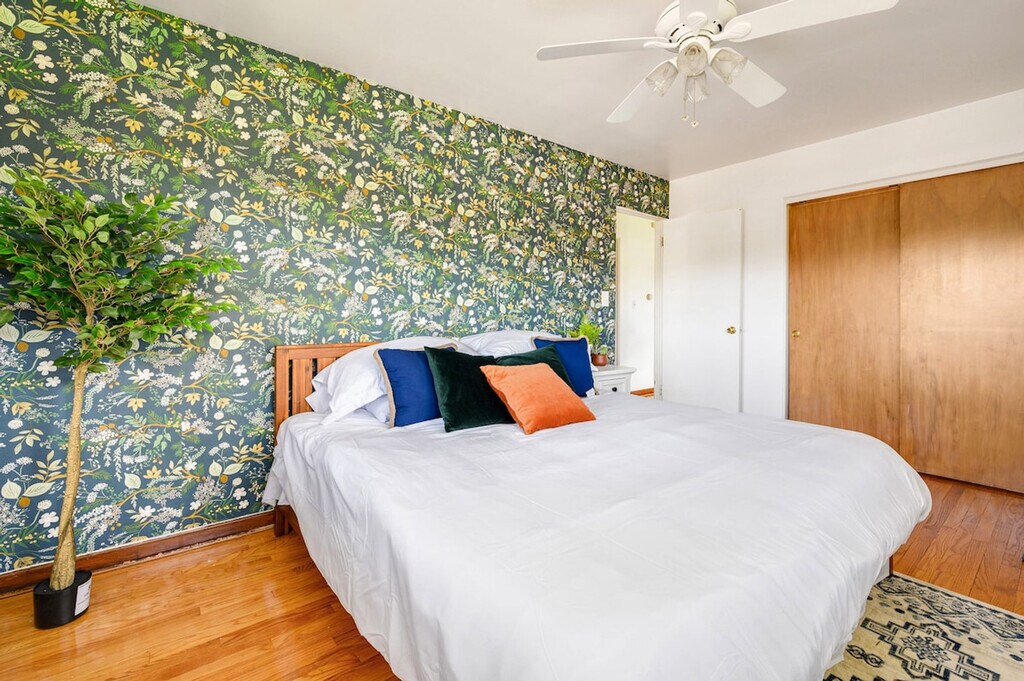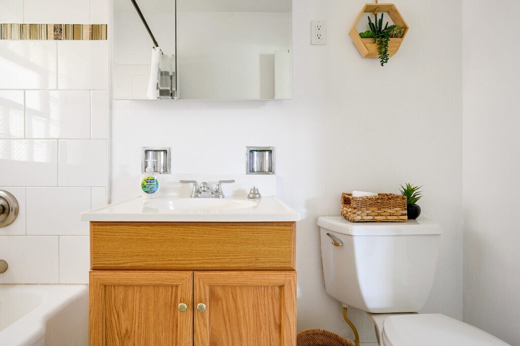 Feel at home in this stunning Westmont apartment, located on the second floor. This cozy space is perfect for groups up to 4. This apartment offers amenities for a relaxing stay, including lightning-fast Wi-Fi and a 75” living room TV with fully loaded entertainment through ROKU (HBO Max, Netflix, Disney Plus, Hulu, and more). The apartment also features a fully stocked kitchen and access to a coin washer and dryer in the building. Two free parking spaces are included. Just steps from the Westmont Metra station, this apartment is conveniently located. The unit is located in the building that is across the train track, so you may hear the train passing by. Please be mindful of your footsteps to avoid disturbing the neighbors downstairs. Check-in and check-out times are flexible. [SI]