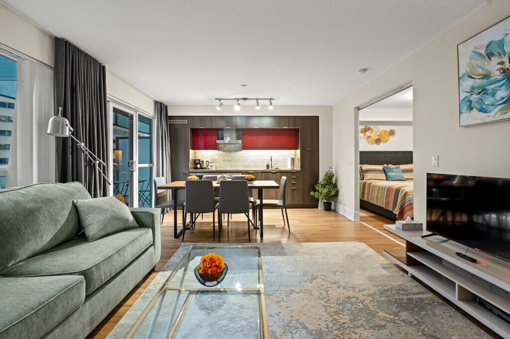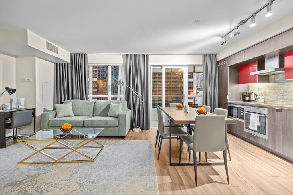 The advertised rate of C$9,449/month is the lowest available price, based on a 30 day(s) stay with a move-in date of March 29, 2026. Rates vary depending on the duration of stay, season, and other parameters. For exact pricing and additional pricing components, please visit our website and enter your desired move-in and move-out dates. The rate is applicable when billed upfront; it can be higher if billed in multiple payments. Experience luxury and feel right at home in this comfortable suite in the heart of downtown Toronto, located just steps away from Union Station, CN Tower, Rogers Center, Air Canada Center, and Harbourfront. This suite has everything you need to make you feel right at home, including a fully functional kitchen with tea, coffee, a kettle, a coffeemaker, and a toaster. A washer and dryer are available with supplies. The bathroom includes towels, shampoo, conditioner, body wash, a hair dryer, and other toiletries. Paid underground parking with in/out privileges is available upon request for $25 per night, or $15 per night if you book for at least 15 nights. Please request in advance as it could be booked. Travel cribs (for 0-18-month-old babies) and bed rails are available for $10 per item per night. Please book them in advance. Guests with reservations for 28 days or more have access to the gym, outdoor swimming pool, and hot tub in the building. Ideally located for major events and international tournaments, including the FIFA World Cup 2026. Every guest must provide their personal information prior to check-in. Please provide the full names of every guest staying in the apartment. You need to be 25 or over in order to check in. For reservations with 7 nights or more, it is possible to check in from the age of 18, but with an increased deposit of 500 CAD. Guests whose names or ID do not match the provided information are not allowed into the building. Pets are not allowed in the apartment. Registration Number: STR-2412-FSHLBQ [SI]
