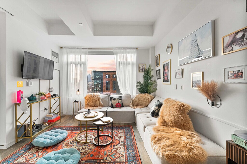 Experience urban luxury in this centrally located apartment with spectacular city views. Perfect for families, this stylish retreat offers a welcoming ambiance to feel at home. The apartment features a fully equipped kitchen, modern amenities, a console with a guestbook and a camera that instantly prints out your memories, hooks for coats, acrylic dog bowls and pet toys. The full bathroom is stocked with toiletries, blow dryers, hair curlers, straighteners, a washer and dryer with detergent, a stand-up shower with a bench, and a toilet with a bidet. The fully stocked kitchen is ready for all culinary adventures, and includes a dishwasher. There’s also a separate dining table with chairs for family meals. The inviting living room features a Roku TV and a cozy sectional couch that rearranges into a queen-sized bed. Extra bedding is available. There’s also a record player, candles, lights with USB plugs, meditation books, and vinyl records. The king-size bedroom is a tranquil sanctuary with blackout curtains. Bathrobes and his and hers slippers are available. A Pack 'n Play crib is also provided. The pool is open seasonally and the building allows three guests at a time. Explore family fun in the South End. The Boston Children’s Museum, Franklin Park Zoo, The Boston Public Garden, South End Open Market, and Copley Square Farmers Market are nearby. Uber is the recommended mode of transportation. The South End is also super walkable. The building allows just three guests at a time to use the pool. A no-shoe policy is in effect to maintain the pristine condition of the apartment. Please don’t take the pet toys, hair styling tools, or bathrobes and slippers. Registration Number: STR003275 [SI]