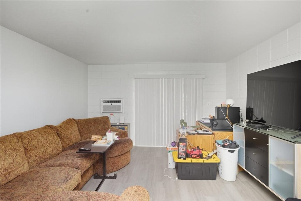 This bright and airy 2-bedroom, 1-bathroom apartment features stylish laminate flooring throughout and an open-concept kitchen equipped with a stove and refrigerator. The queen-sized bedroom offers ample space and comfort. Additional perks include free parking (one designated spot). Tenants are responsible for electric and water (electric stove and electric heat). The landlord covers trash removal. Don't miss out on this conveniently located and budget-friendly home!